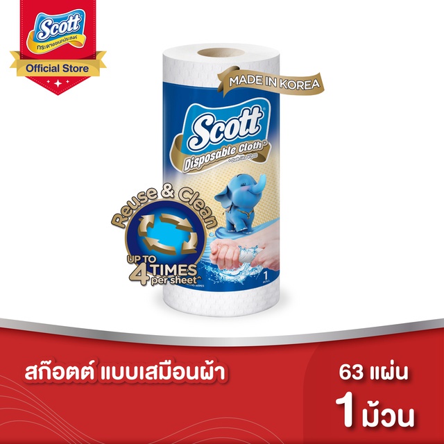 Scott สก๊อตต์® กระดาษอเนกประสงค์เสมือนผ้าแบบซักใช้ซ้ำได้ 63 แผ่น (1 ม้วน)