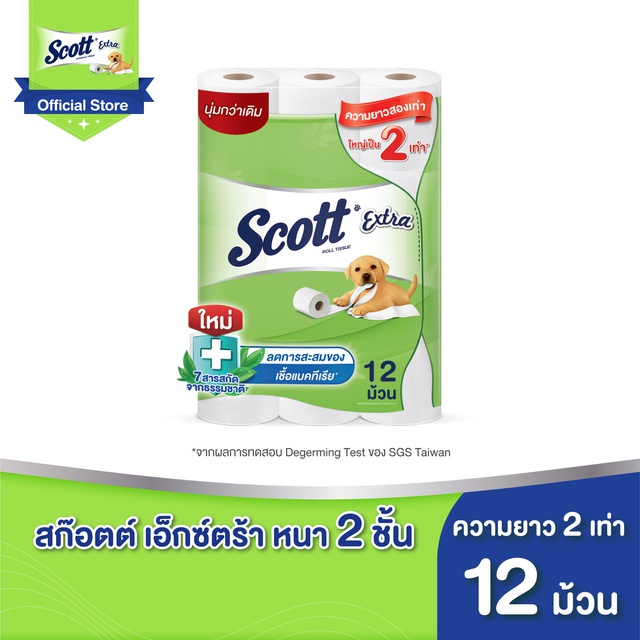 Scott Extra กระดาษชำระทิชชู่ สก๊อตต์ เอ็กซ์ตร้า ความยาวสองเท่า 12 ม้วน