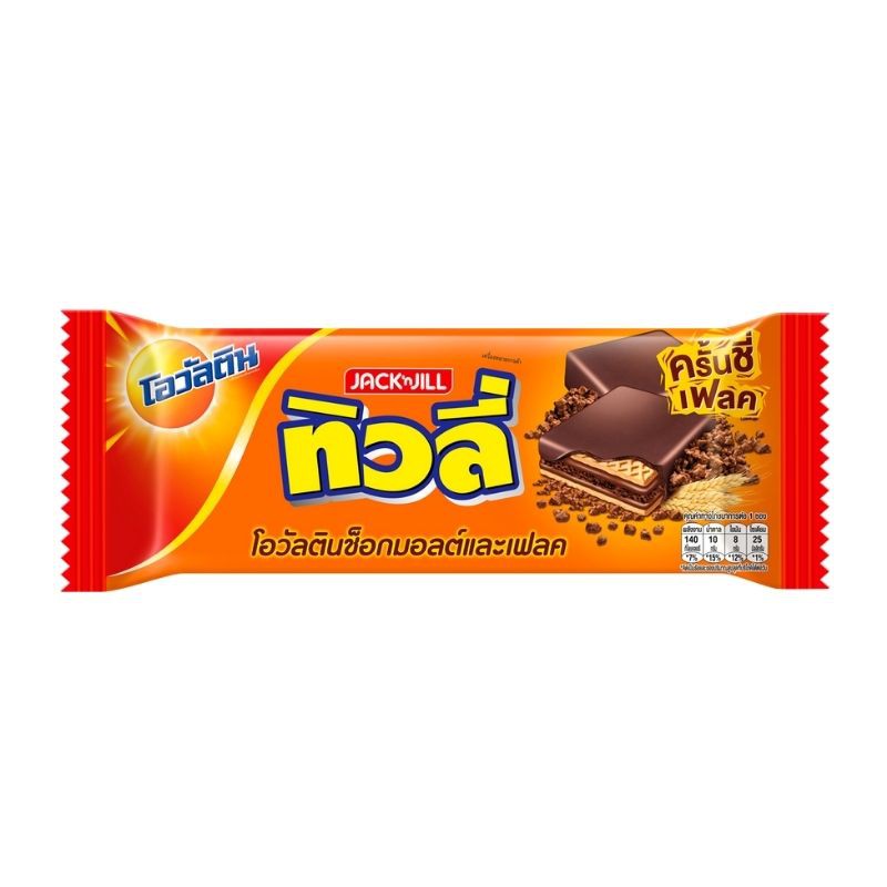 ทิวลี่ x โอวัลติน เวเฟอร์สอดไส้ครีมรสโอวัลตินช็อกมอลต์และเฟลค เคลือบช็อกโกแลต 26ก
