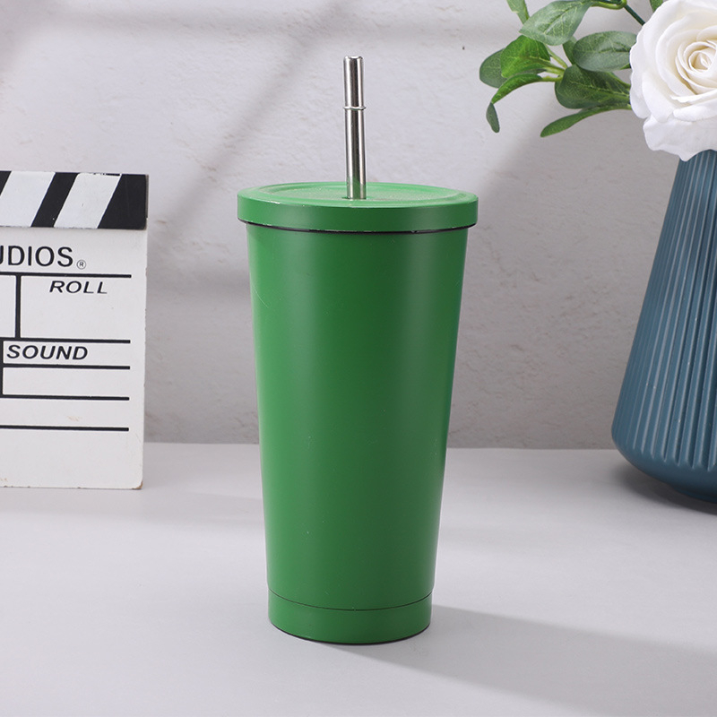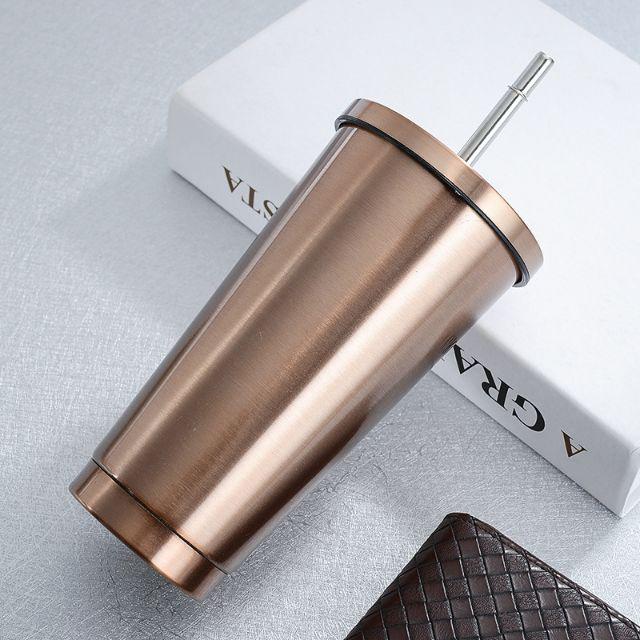 แก้วน้ำสแตนเลส แก้วเก็บความเย็น พร้อมหลอด ขนาด 500ml