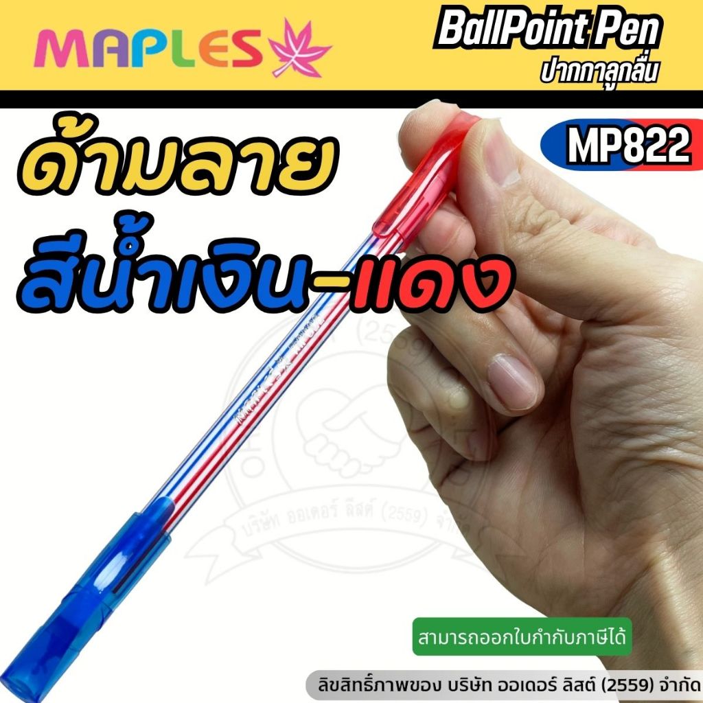 [Official Store]MAPLE ปากกาลูกลื่น 2 หัว รุ่น MP822 - เขียนลื่น ด้วยหัวปากกาขนาด 0.5 มม. หมึกปากกาสีน้ำเงิน-แด ง 50 ด้าม