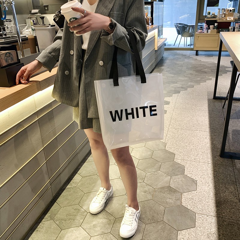 ส่งด่วน GUCSELECTED(B957) กระเป๋าสะพายไหล่หรือถือ สกรีนตัวอักษรหนังPVC