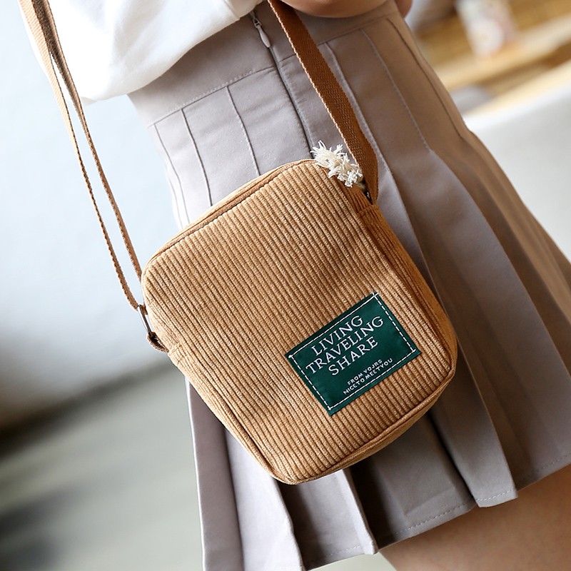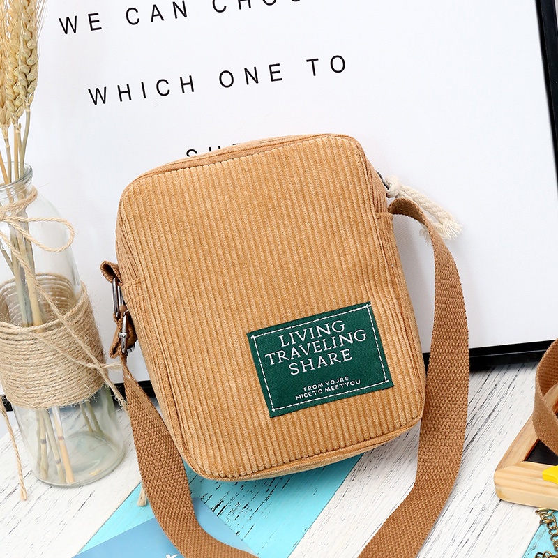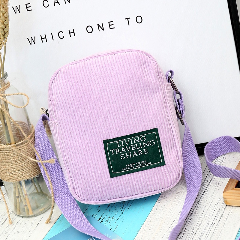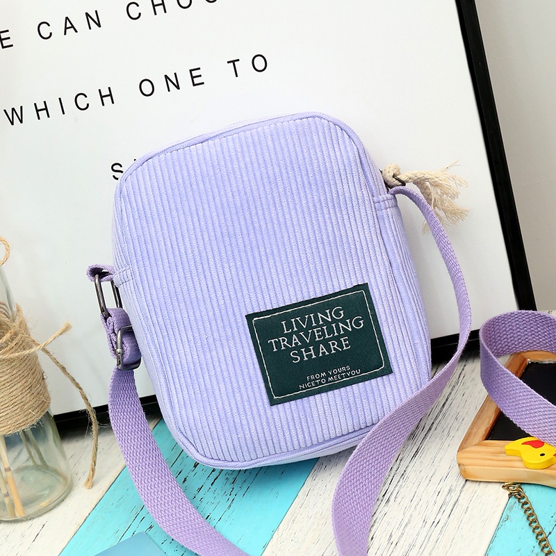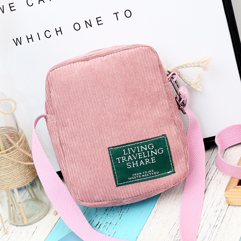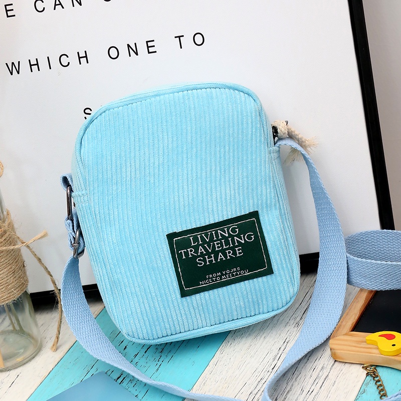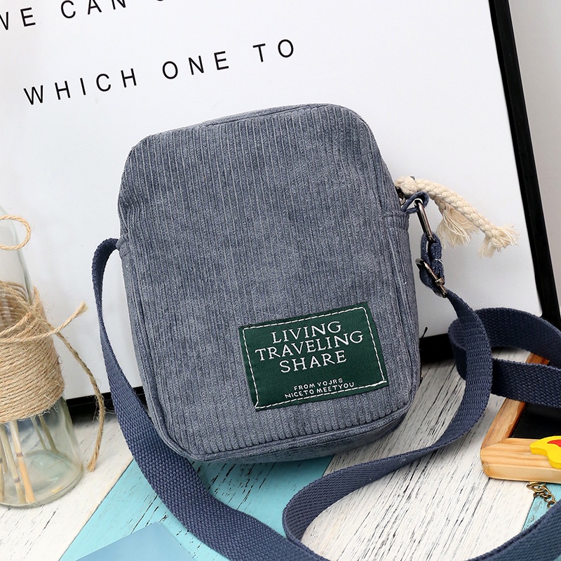ส่งด่วน GUCSELECTED(B232) กระเป๋าผ้าสะพายข้างสีดำ-หลากสี ป้ายLIVING TRAVELING SHARE