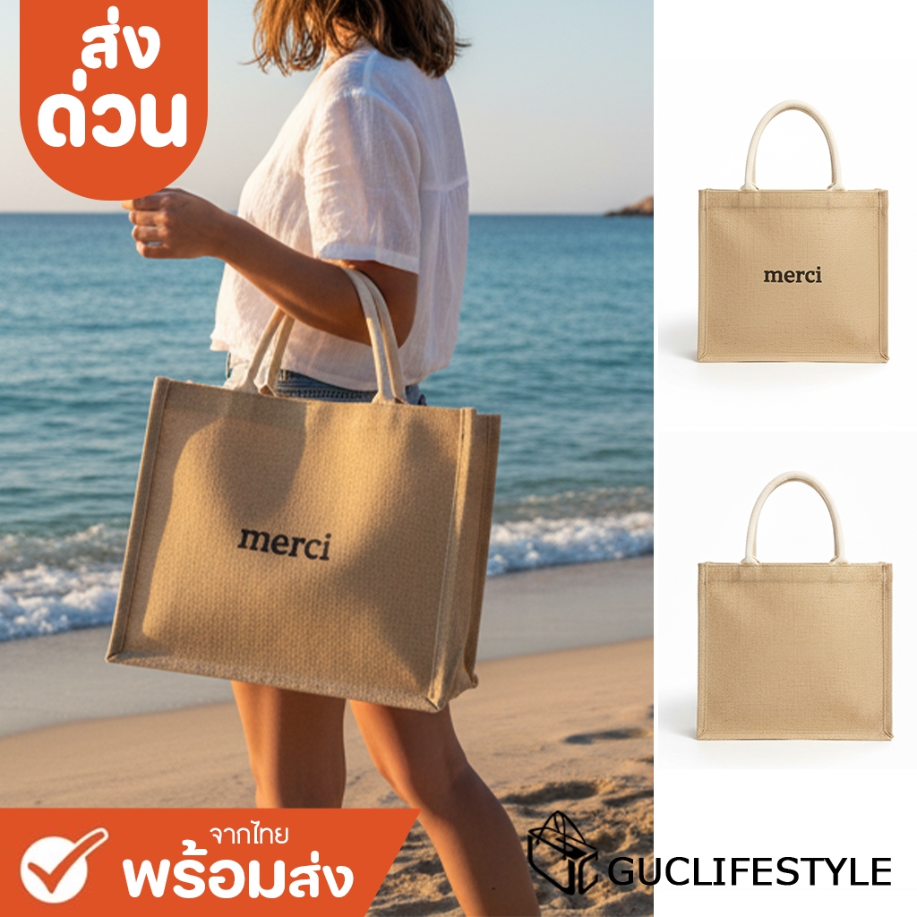 ส่งด่วน GUCSELECTED(B1321) กระเป๋า merci กระเป๋าช้อปปิ้งผ้ากระสอบ