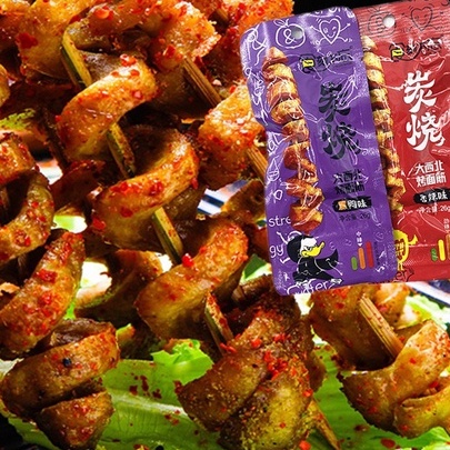【ซือเค่อบู๋หวั่ง】食刻不忘 炭烧面筋ไส้กรอกเต้าหู้บาร์บิคิว รสหม่าล่าและรสสะเต๊ะ เนื้อแน่นหนึบอร่อย