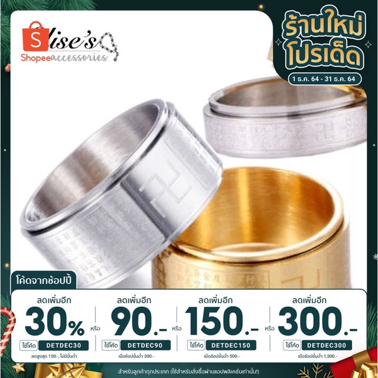 แหวนหัวใจพระสูตร หทัยสูตร พระคาถา หมุนได้ ตัวเรือนสแตนเลสแท้