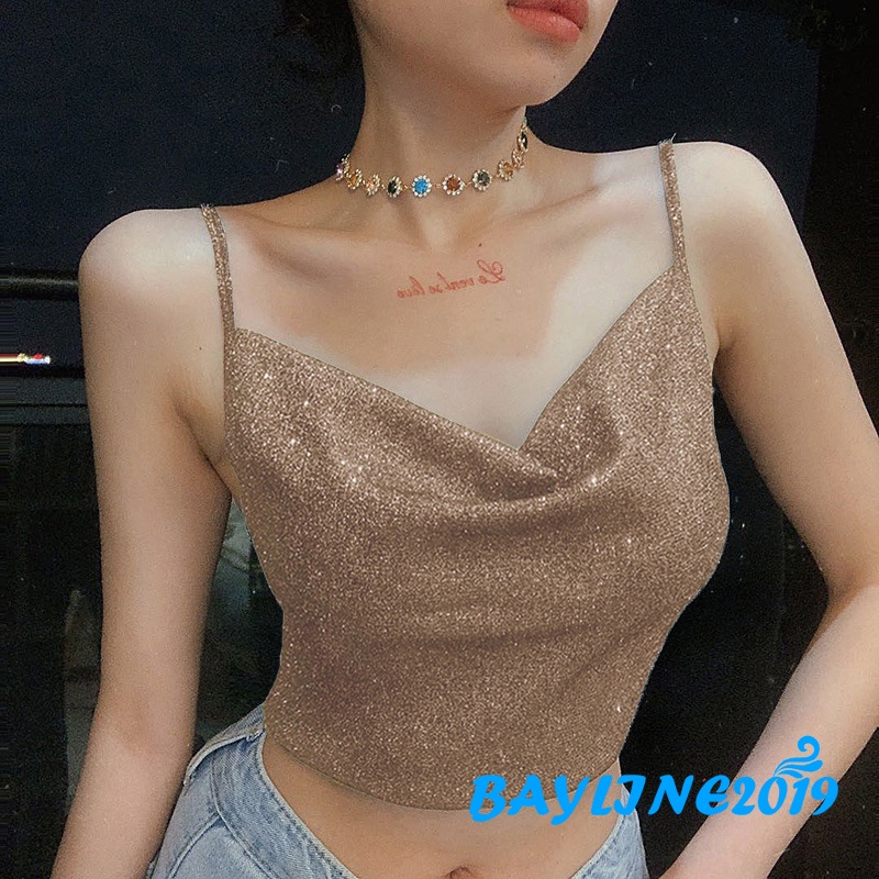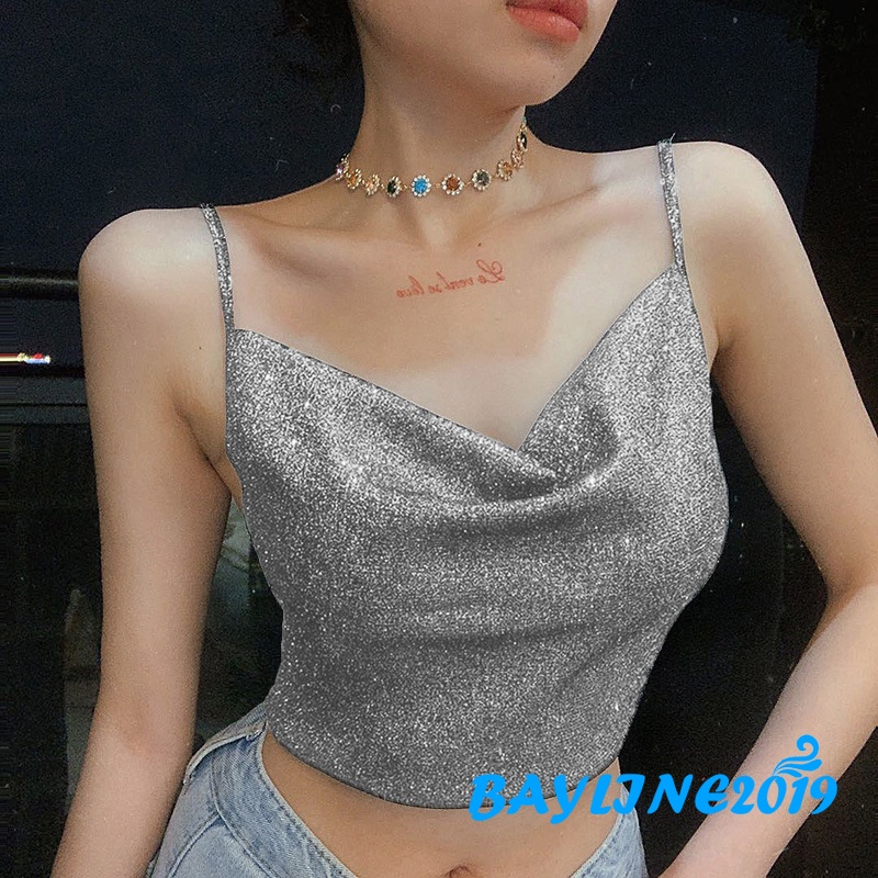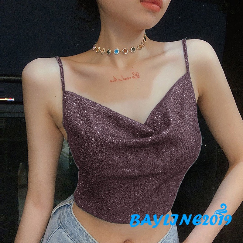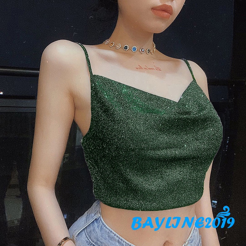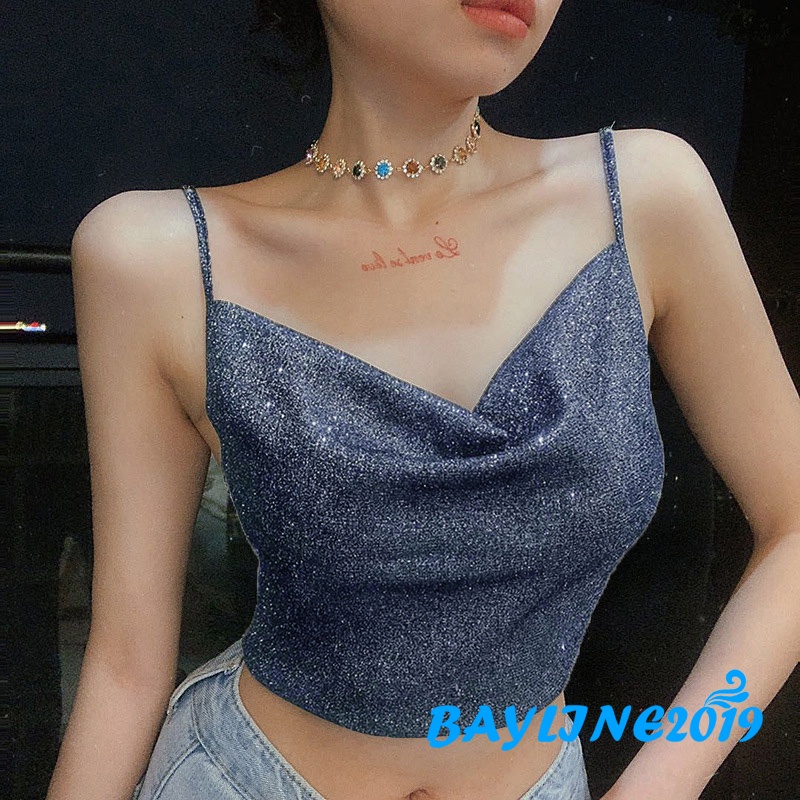 Bay- เสื้อสายเดี่ยว คอวี ตัวสั้น สีดํา เซ็กซี่ ฤดูร้อน สําหรับผู้หญิง ใส่ไปคลับ