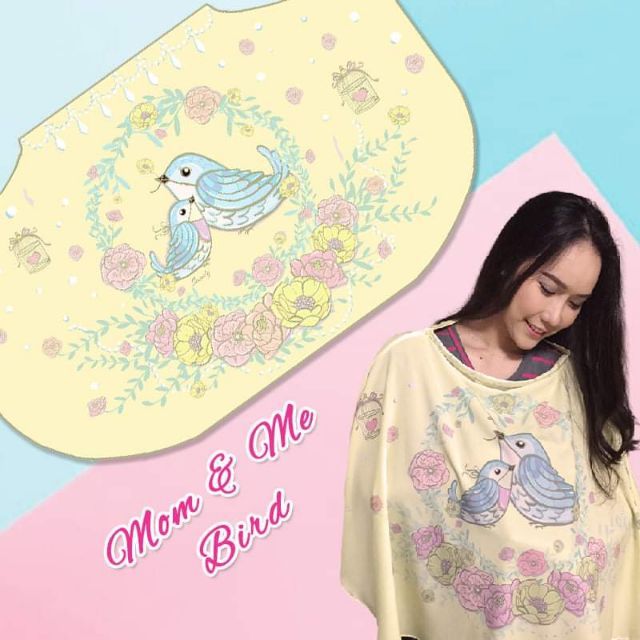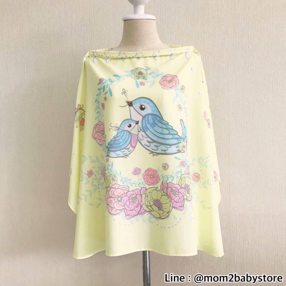 ผ้าคลุมให้นม Silk Satin Mom & Me สีเหลืองลายนก
