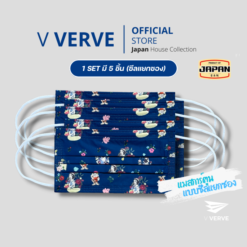 Verve - แมสการ์ตูน แบบซีลซองแยก Disney หน้ากากขนาดผู้ใหญ่ขนาดผู้ใหญ่ 3 ชั้น นำเข้าจากญี่ปุ่น การ์ตูน ญี่ปุ่น 100%