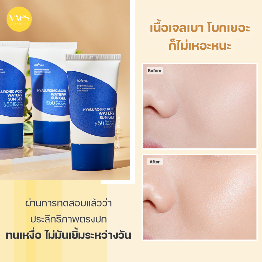 🌟พร้อมส่ง!!!🌟Isntree Hyaluronic Acid Watery Sun Gel SPF50 + PA ++++ 50 ml. กันแดดเนื้อเจล ไร้กลิ่น