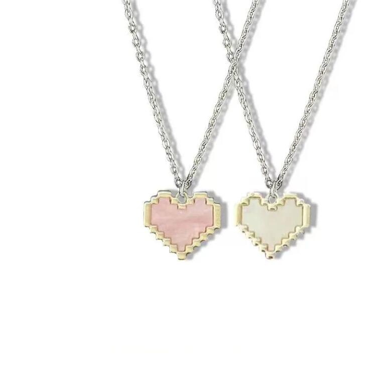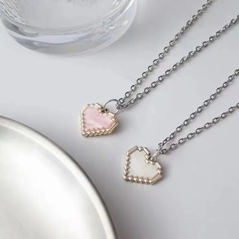 สร้อยคอแฟชั่น จี้รูปหัวใจ พีช โมเสค สีชมพูน่ารัก สไตล์เกาหลี สําหรับเด็กผู้หญิง