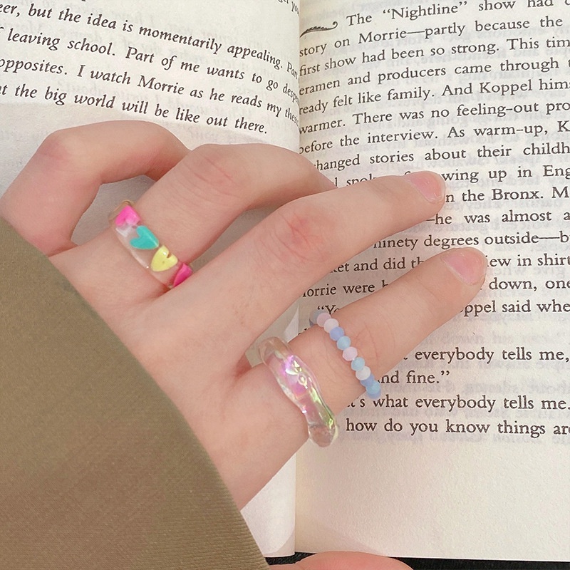 ชุดแหวนอะคริลิค ประดับลูกปัดเรซิ่น ทรงไม่สมมาตร สีโปร่งใส จํานวน 3 ชิ้น ต่อชุด