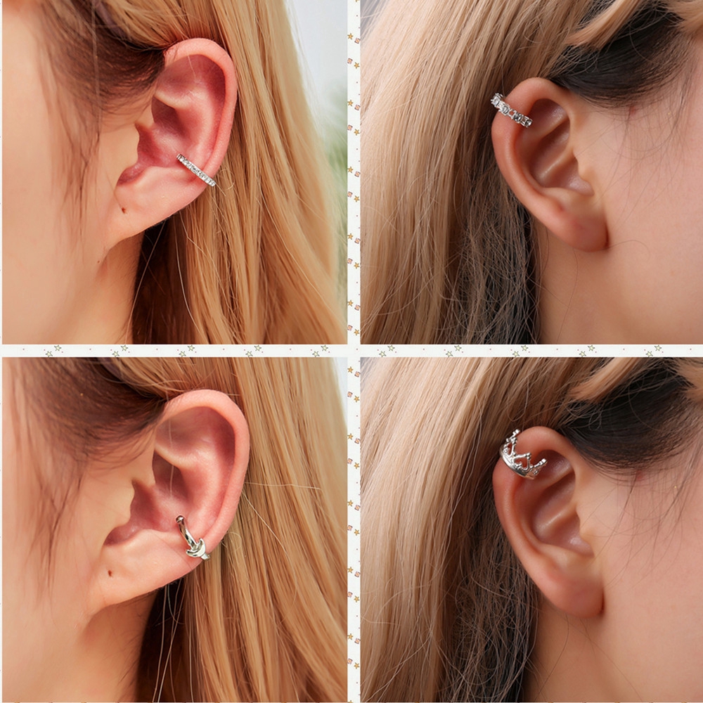 ต่างหูหนีบ โลหะ สีเงิน สไตล์เกาหลี สำหรับผู้หญิง