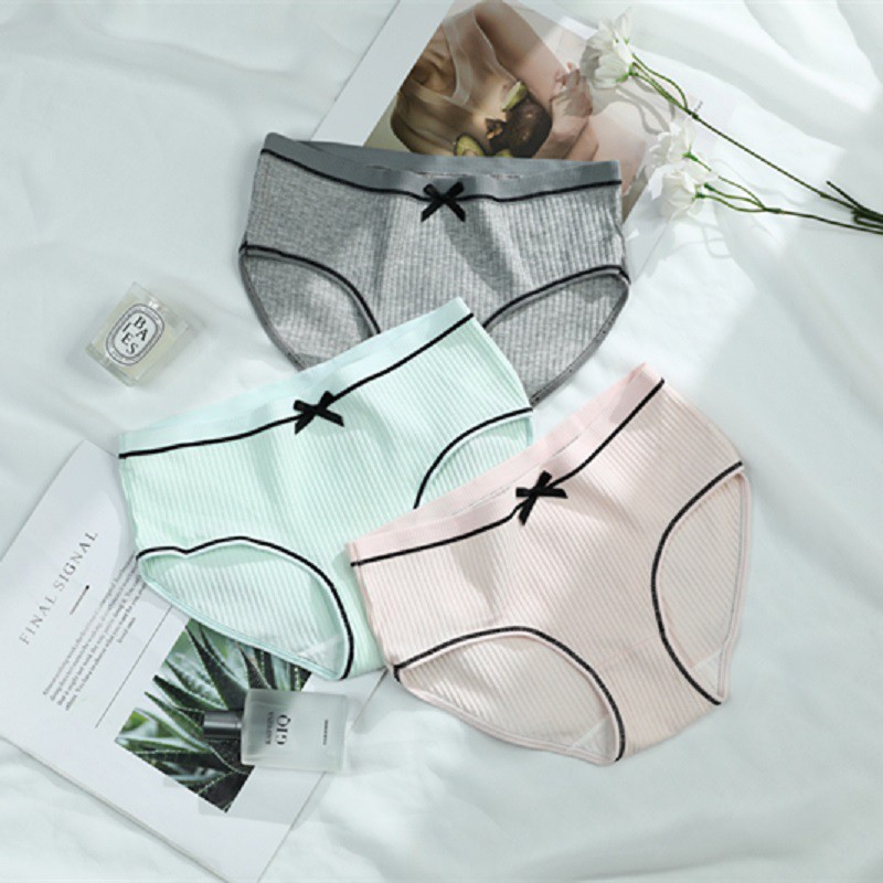 thekingshop*พร้อมส่งที่ไทย*กางเกงในสีพืนติดโบว์ ผ้านุ่ม ใส้สบายค่ะ