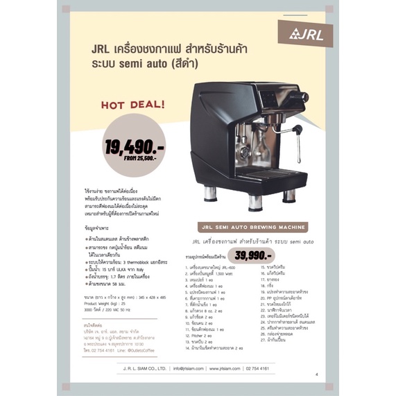 (2in1) JRL เครื่องชงกาแฟระบบ Semi-Automatic • ปั๊ม Vibration ดึงรส Fruity/Floral ได้ดีกว่า (2in1 ถังและสายดูด)