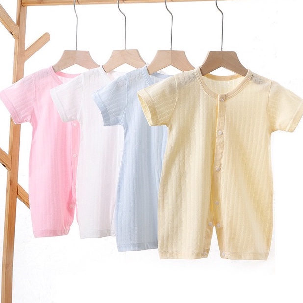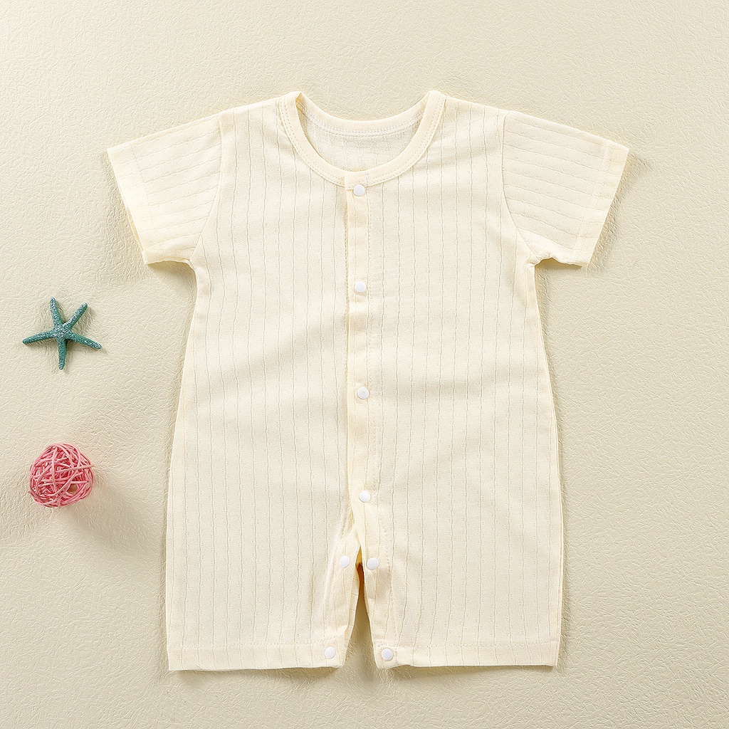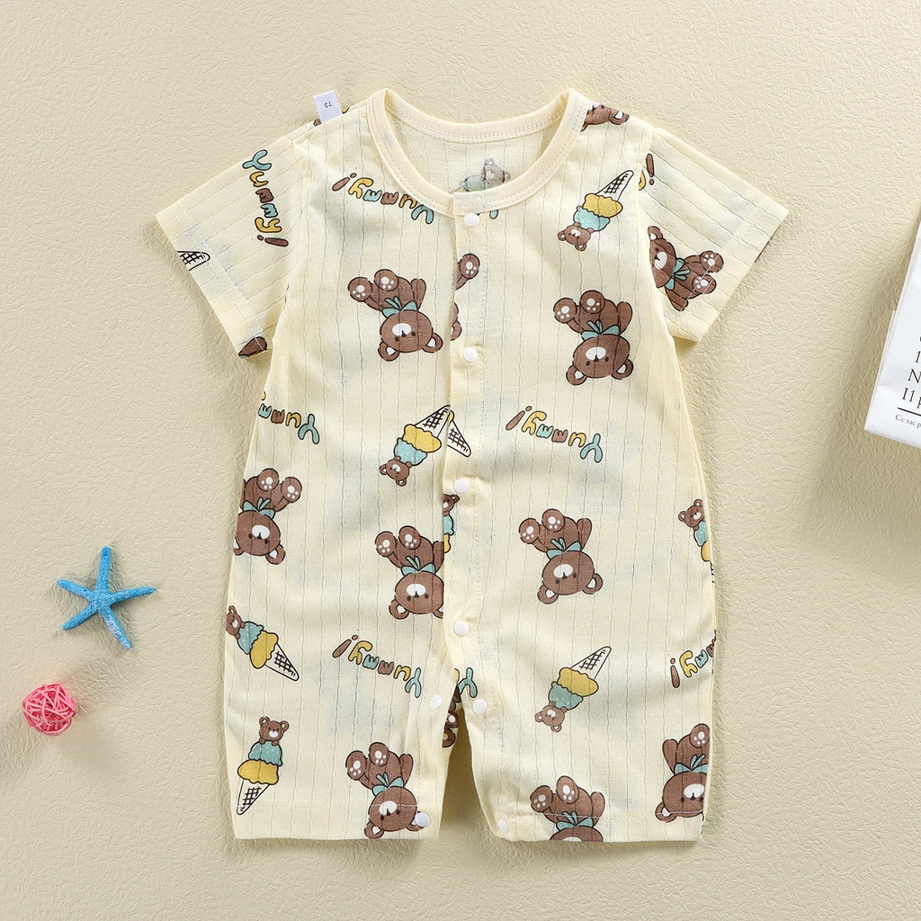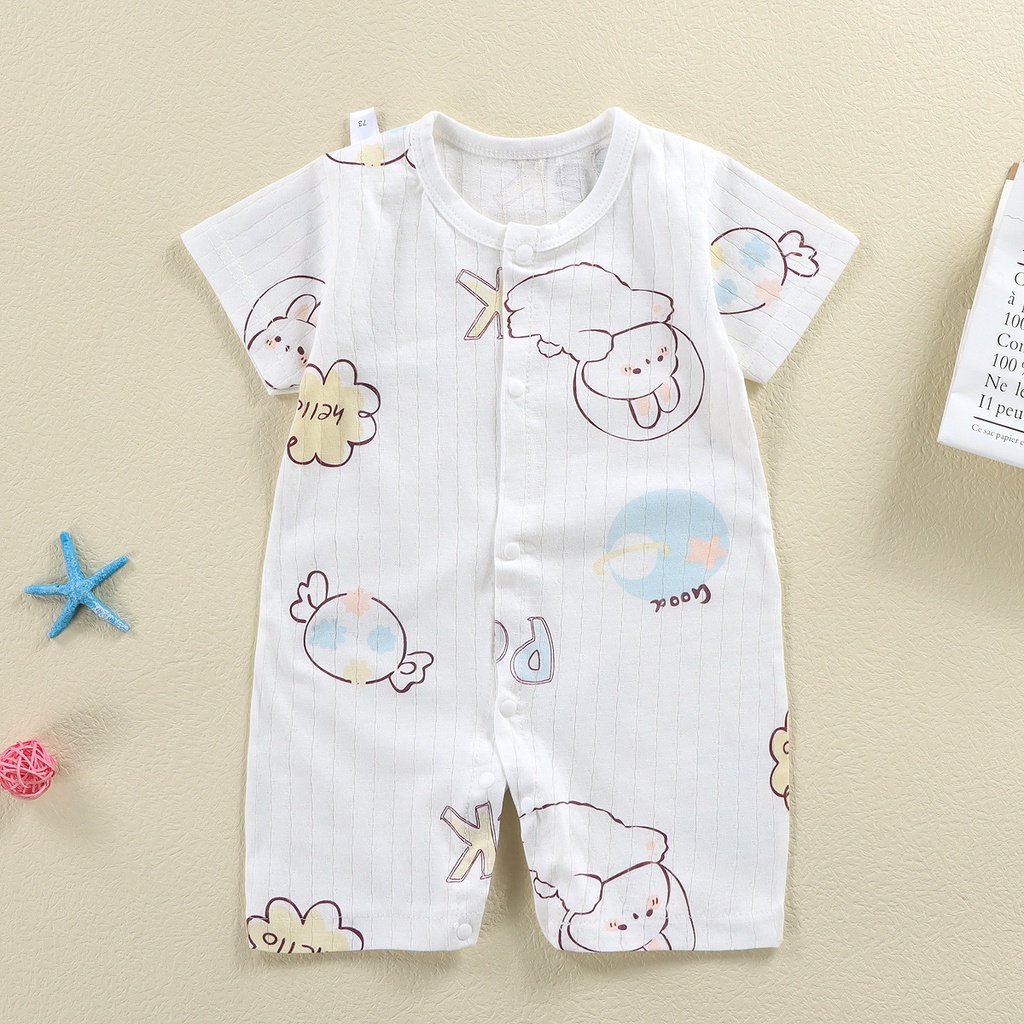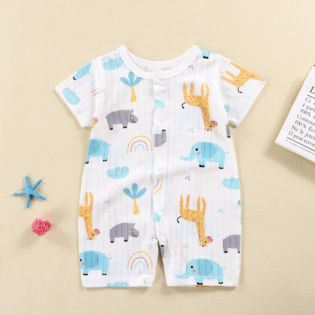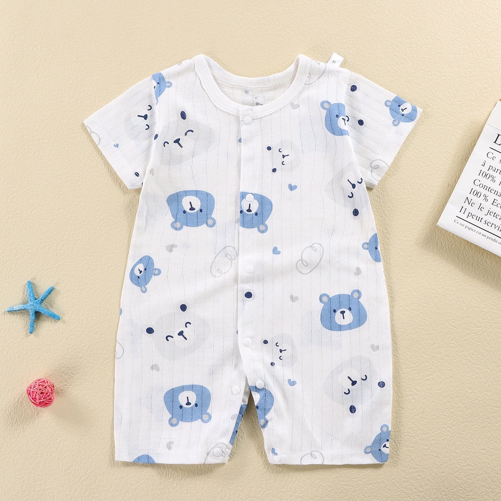 ชุดจัมพ์สูทแขนสั้น เนื้อผ้าฝ้าย ลายการ์ตูนสำหรับเด็กทารก
