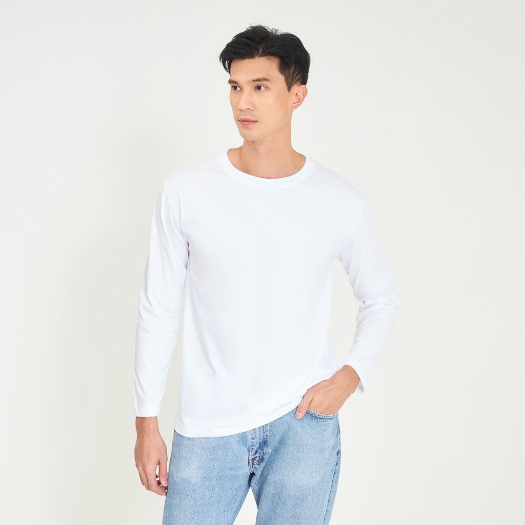 Yuedpao ยอดขาย No.1 ⚡เสื้อยืดแขนยาว ไม่ย้วย ไม่หด ไม่ต้องรีด ผ้านุ่มใส่สบาย_สีขาว