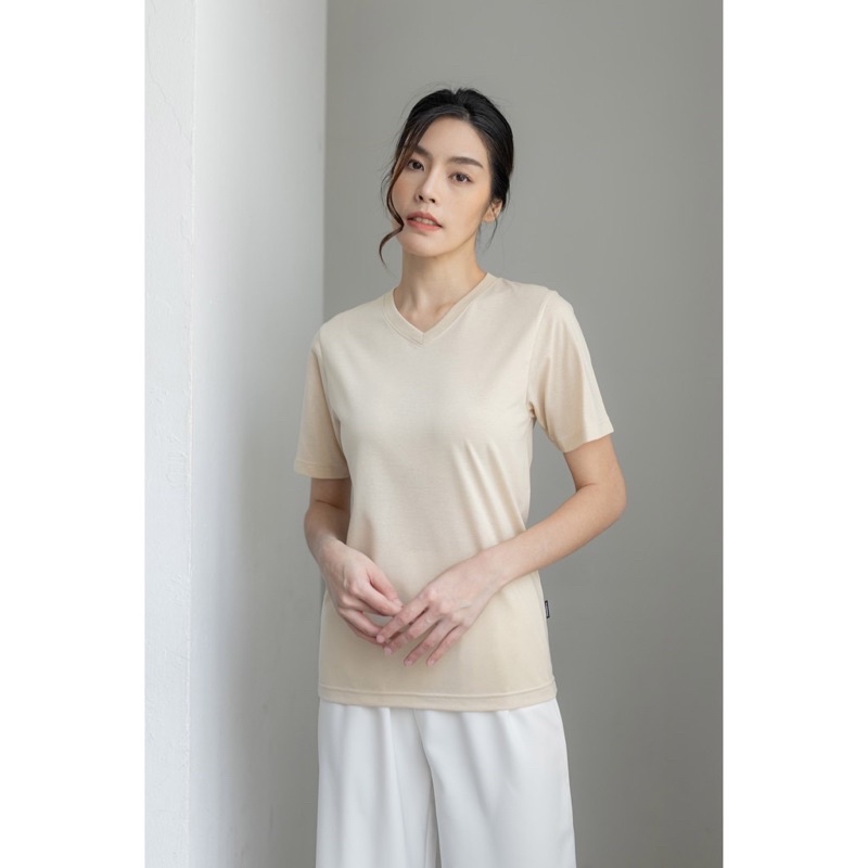 Yuedpao Ultrasoft Non-Iron [NEW] เสื้อยืดคอวี ผ้านุ่มใส่สบาย ไม่ย้วย ไม่หด ไม่ต้องรีด เสื้อยืดสีพื้น - Set Dry Leaf