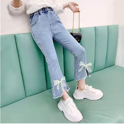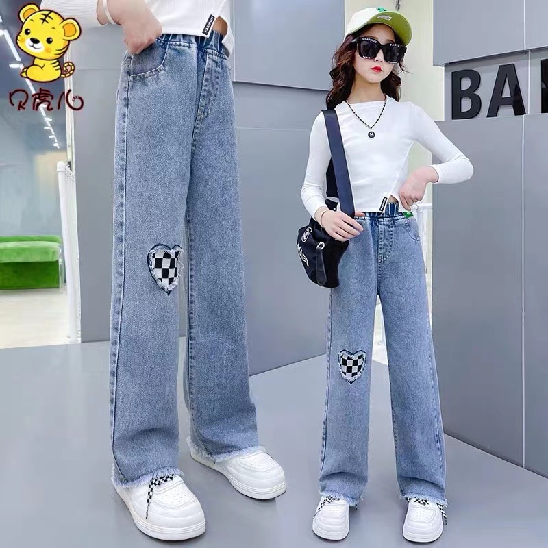 กางเกงยีนขายาว ขากว้าง แฟชั่นฤดูใบไม้ผลิ สําหรับเด็กผู้หญิง 90-160