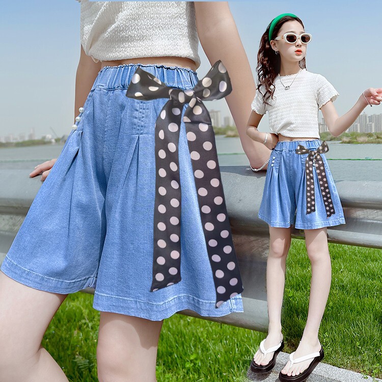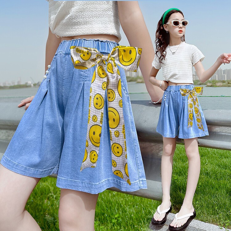 กางเกงยีนขาสั้น ปักลายการ์ตูน สำหรับเด็กผู้หญิง