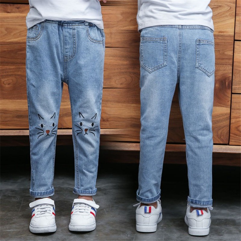 กางเกงยีนขายาว สีฟ้า สำหรับเด็ก