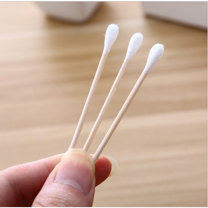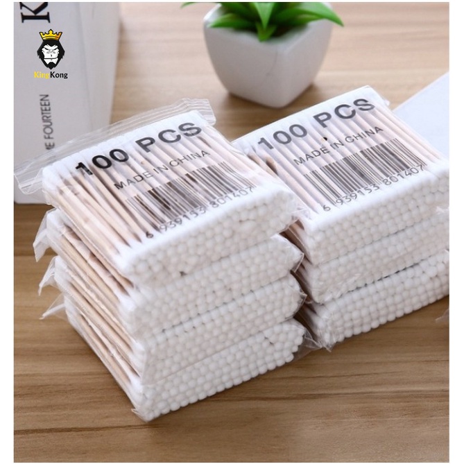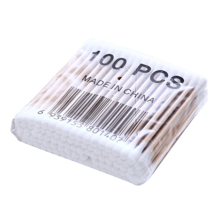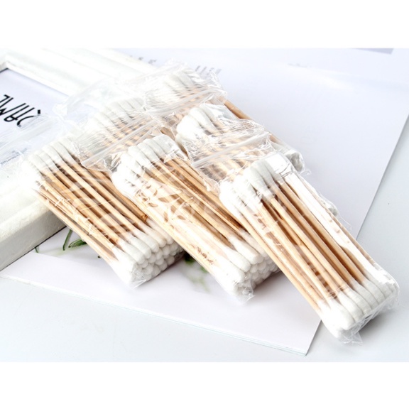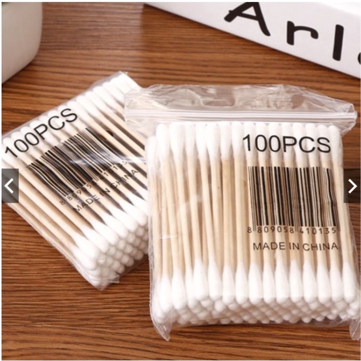 คอตตอนบัด 100 ก้าน (แพ็คเดี่ยว) Cotton buds สำลีปั่นหูด้ามไม้ สำลีไม้ สำลีก้าน สำลีเช็ดเครื่องสำอาง
