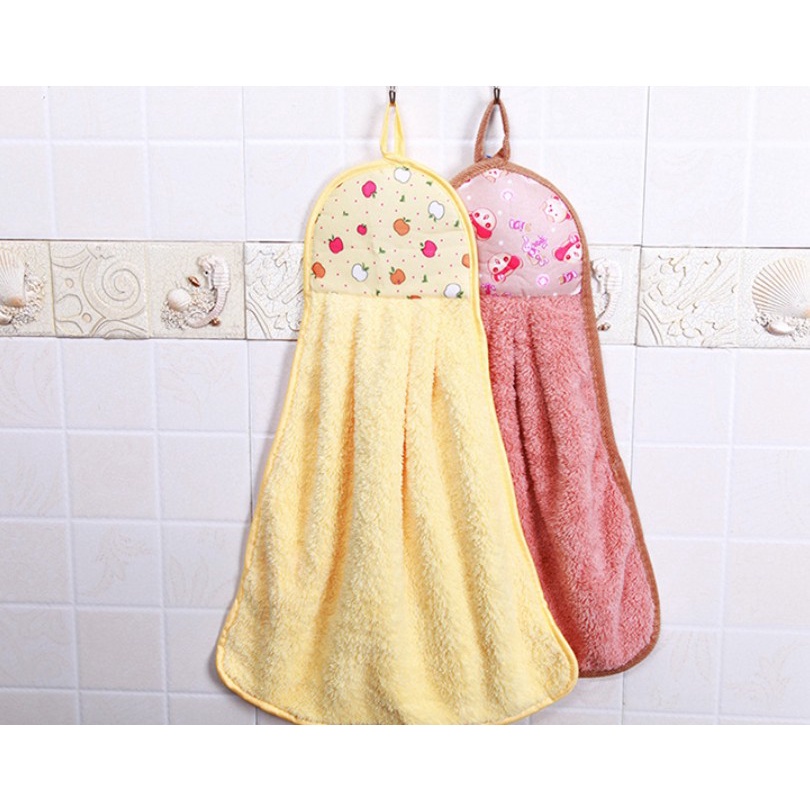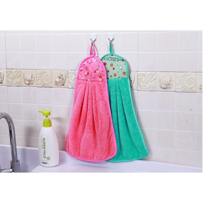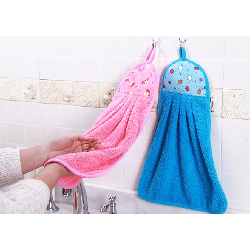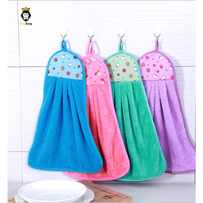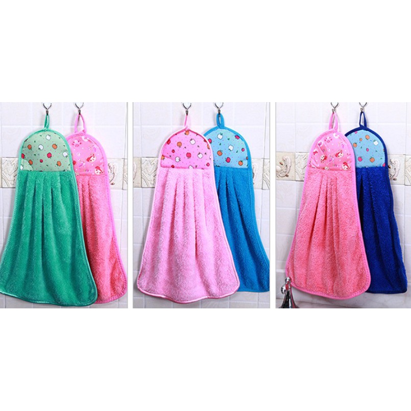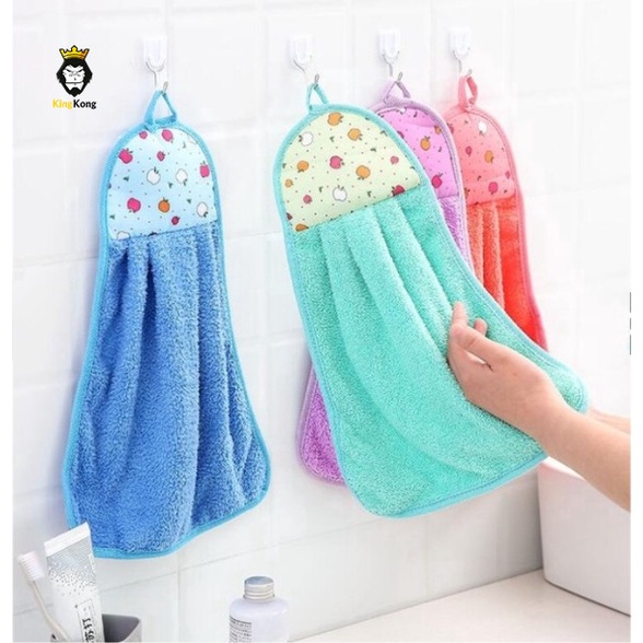 ผ้าเช็ดมือหนานุ่ม(มีที่แขวน) เนื้อผ้านาโน ซึมซับน้ำได้ดีมาก แห้งไว
