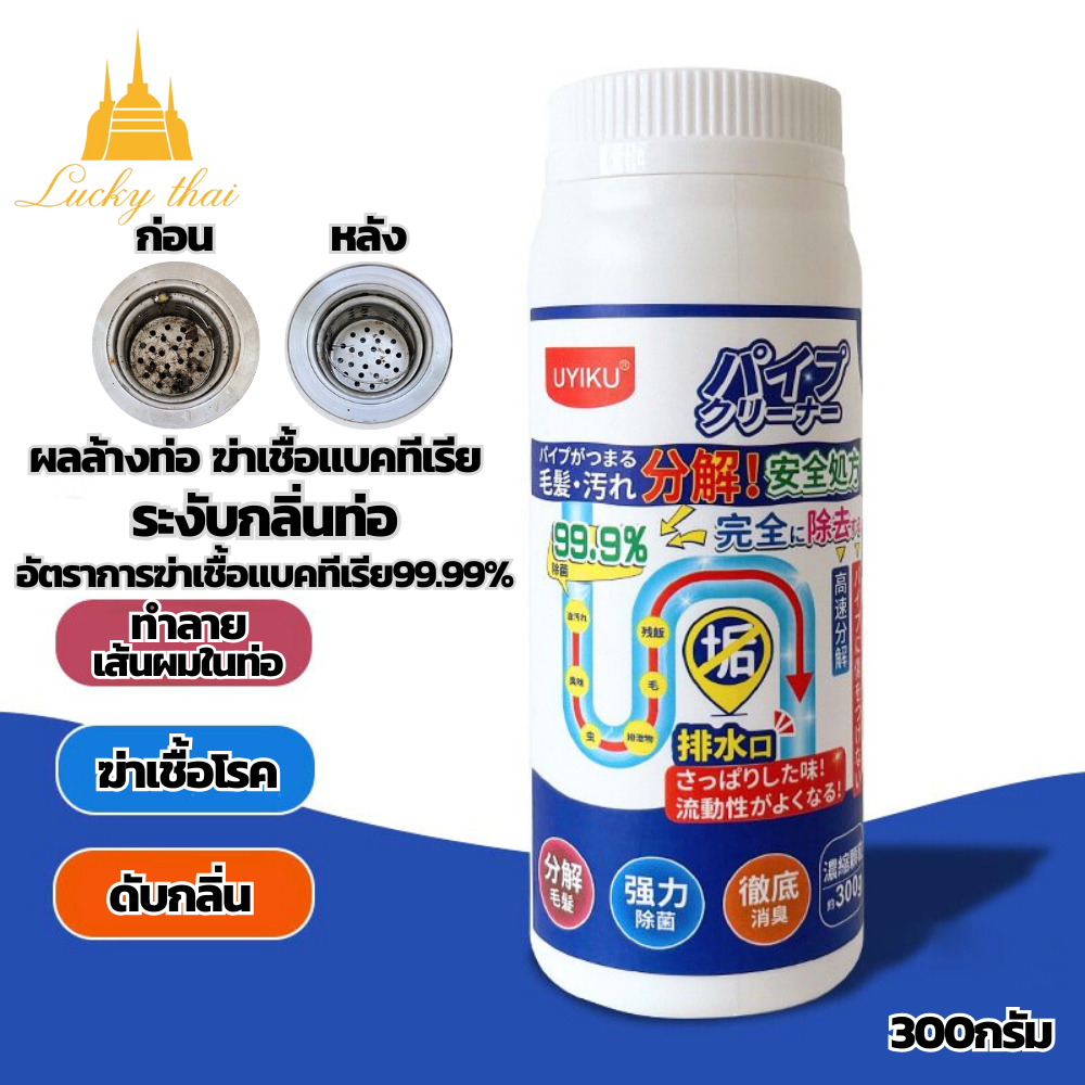 luckythai ผงระเบิดท่อ แก้ปัญหาท่ออุดตัน ดับกลิ่นท่อ ผงล้างไขมันอุดตัน ปริมาณ300กรัม