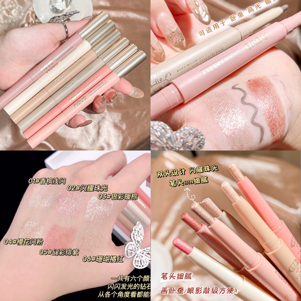 5432 NOVO อายแชโดว์อินไลเนอร์ 2 in 1 ปากกาเขียนหัวตา ทาตา เขียนใต้ตาดอลลี่อาย เนื้อดี ติดทน กันน้ำ Dolly Eye Shadow Pen