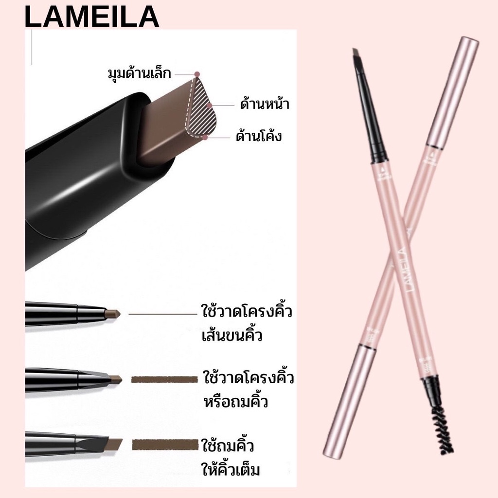 Lameila 835 ดินสอเขียนคิ้วแบบหมุนออโต้ 2in1 พร้อมแปรงปัดคิ้ว เขียนคิ้วง่าย เส้นคมชัด ไม่เป็นก้อน ติดทน กันน้ำ Eyebrow