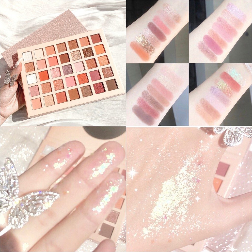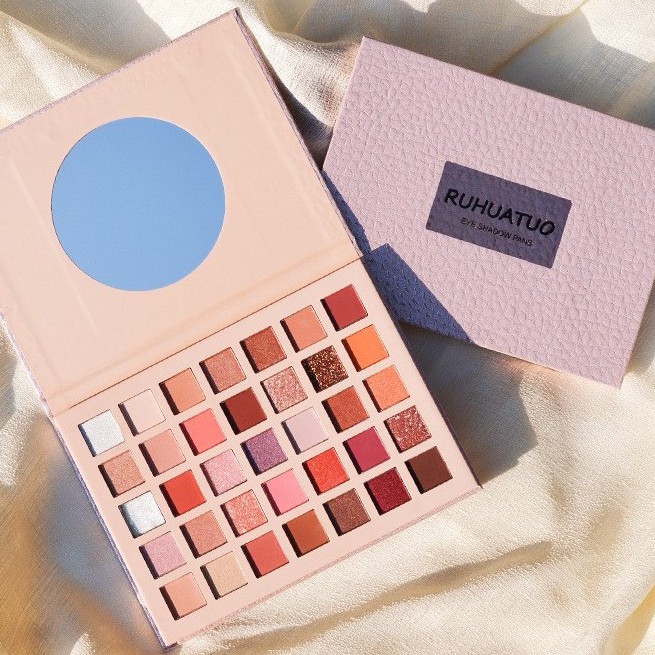 RUHUATUO พาเลทอายแชโดว์ทาตา 35 สี เนื้อใยไหม ชิมเมอร์ กลิตเตอร์ สีโทนพีช น ่ารัก ติดทน Eye Shadow Palette