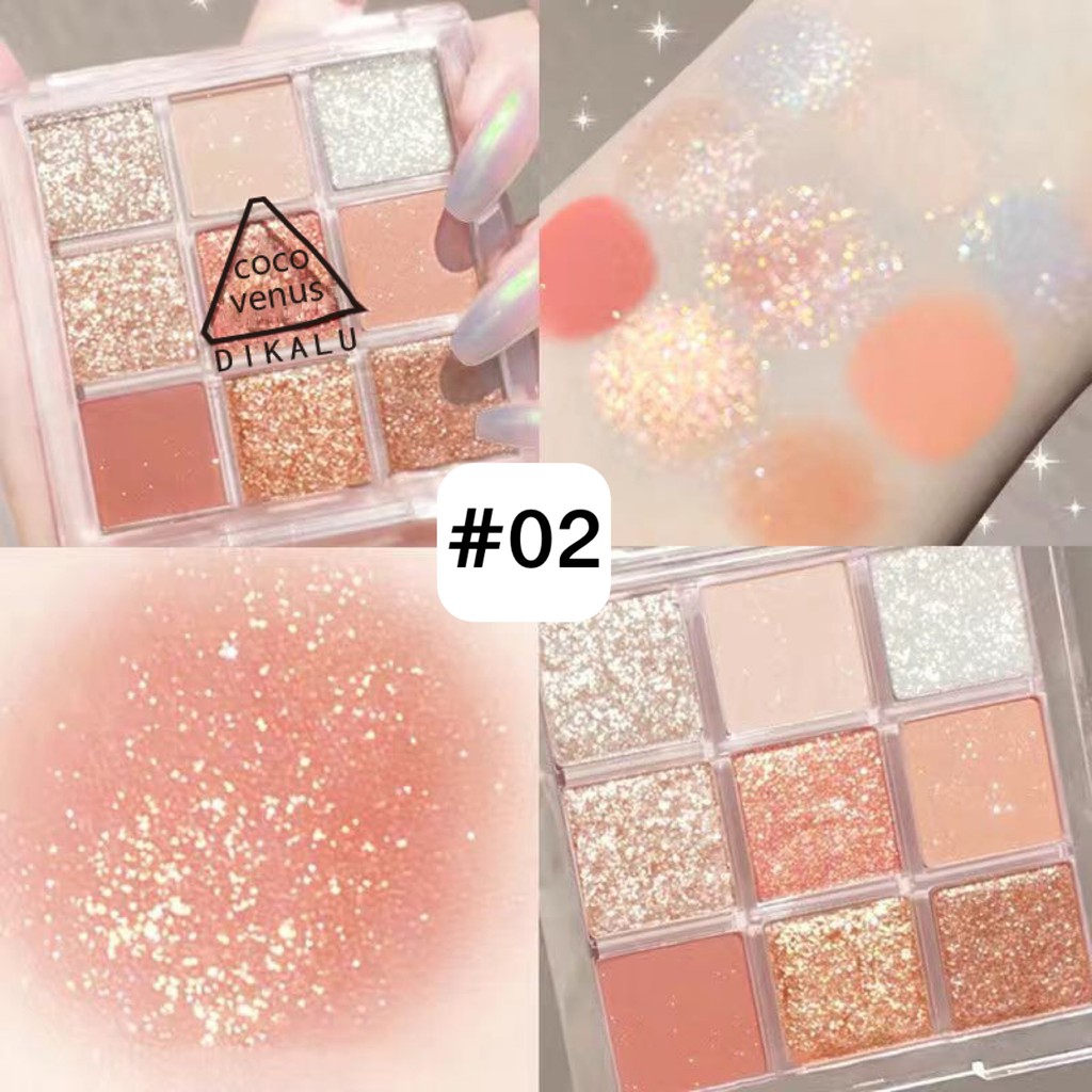 Dikalu eyeshadow (DKL009) อายแชโดว์ พาเลทตา 9 สี เนื้อดินน้ำมัน เนื้อใยไหม ประกายชิมเมอร์ สีสวย ติดทน กันน้ำ