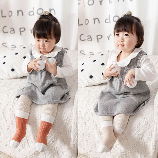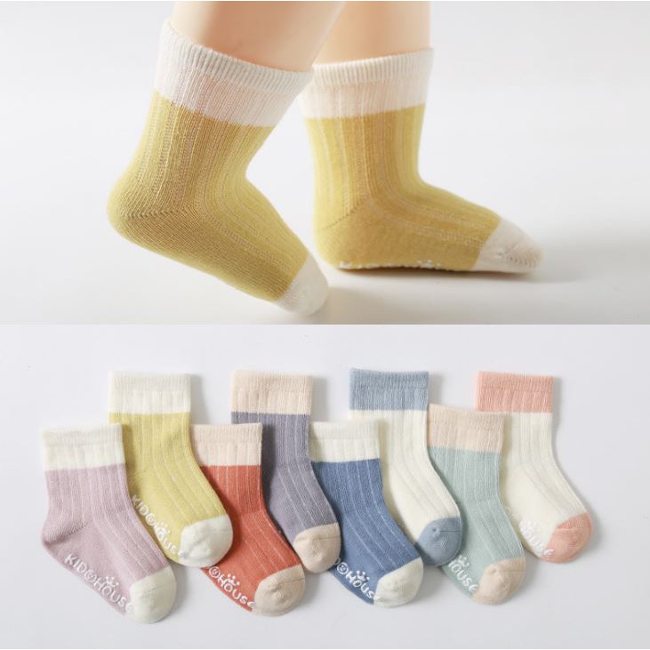 D230 ถุงเท้าเด็ก ถุงเท้ายาวเด็ก รุ่น 2โทน และสีพื้น ขนาด S/M/L (มีกันลื่น)