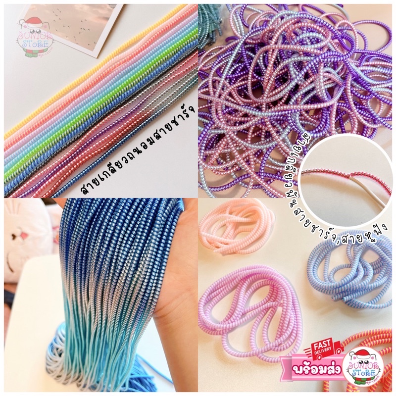 สายเกลียวถนอมสายชาร์จ สายพัน3in1ยาว1.4M,แบบสีเงารุ้งยาว1.6M กันหัก กันดำ สีสันสวยงามพาสเทลน่ารัก เท่ (CP1)