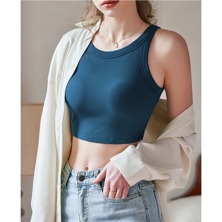 เสื้อสายเดี่ยว คอกลม ผ้ายืด เข้ารูป ป้องกันการแอบมอง สําหรับผู้หญิง
