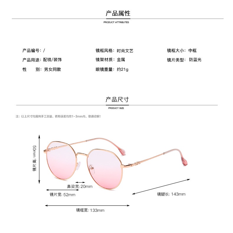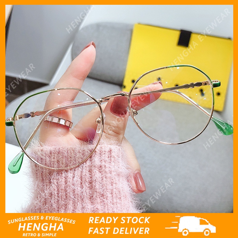 (HENGHA) COD แฟชั่นเกาหลีสไตล์เฉดสีสำหรับผู้หญิงแว่นตาป้องกันรังสีสำหรับผู้หญิงย้อนยุคกรอบแว่นตากลม