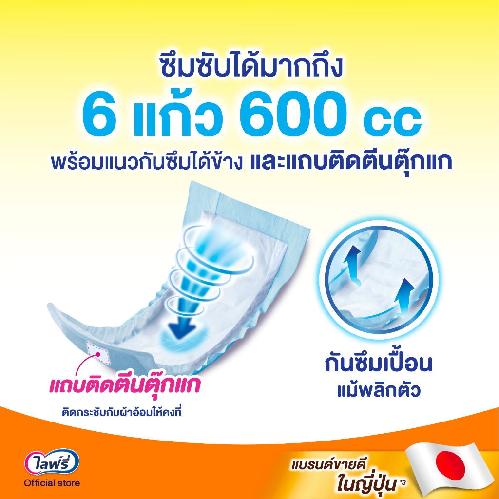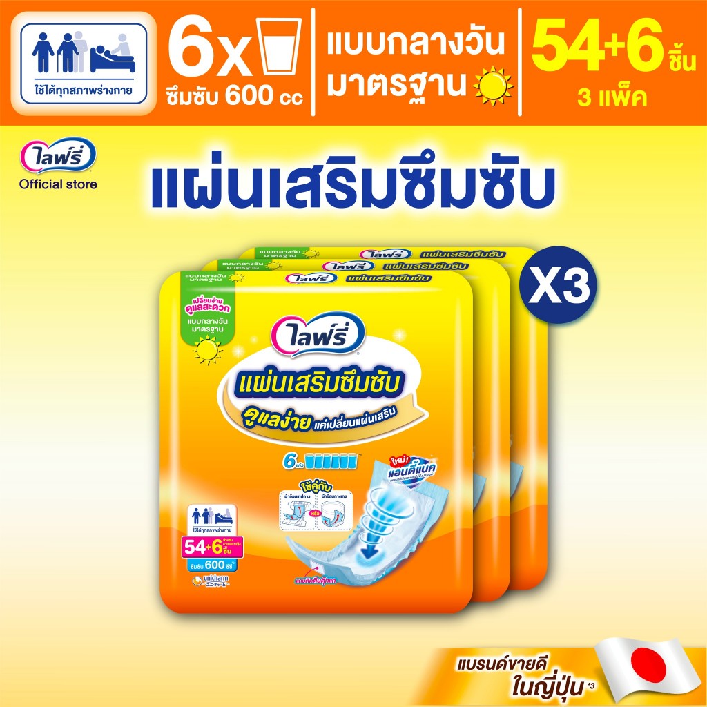 Lifree ไลฟ์รี่ แผ่นเสริมซึมซับ แบบมาตรฐาน 54+6 ชิ้น (1 ลัง 3 แพ็ค)