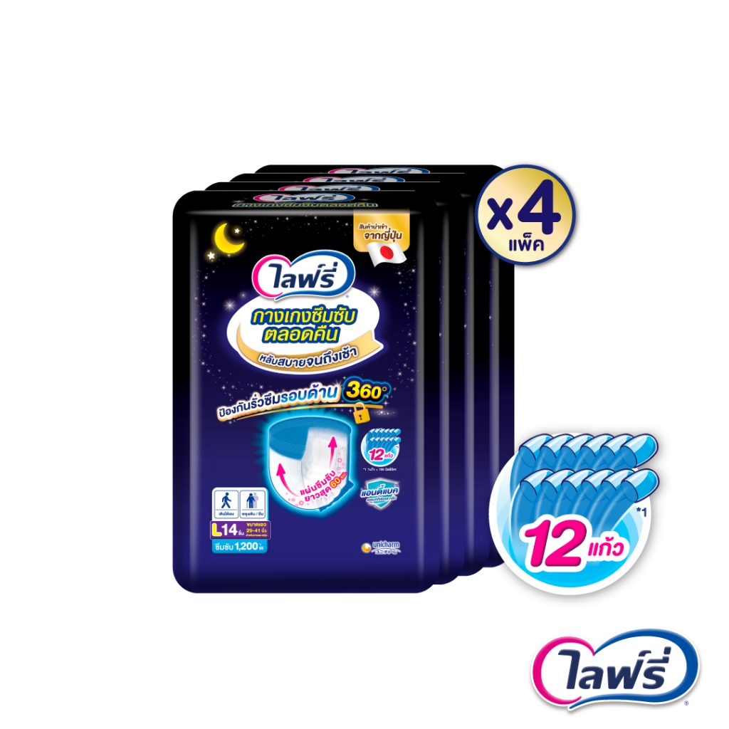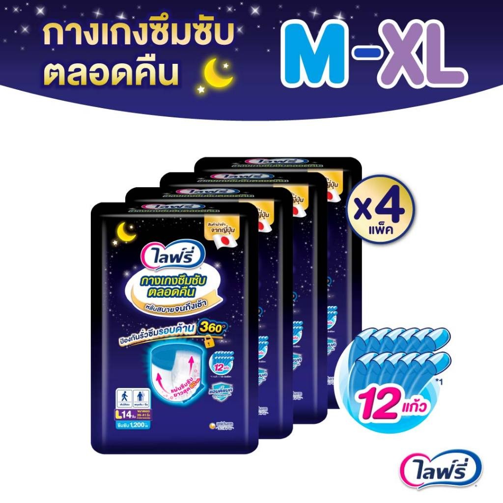 [เลือกไซส์เลย] Lifree ไลฟ์รี่ ผ้าอ้อมผู้ใหญ่ กางเกงซึมซับตลอดคืน ไซส์ M - XL (4แพ็ค)