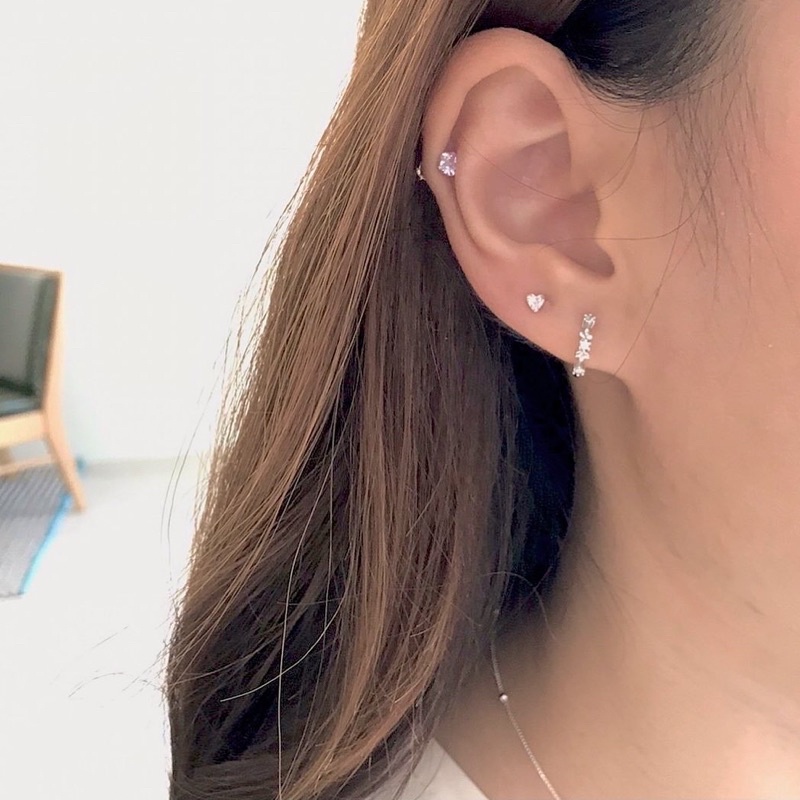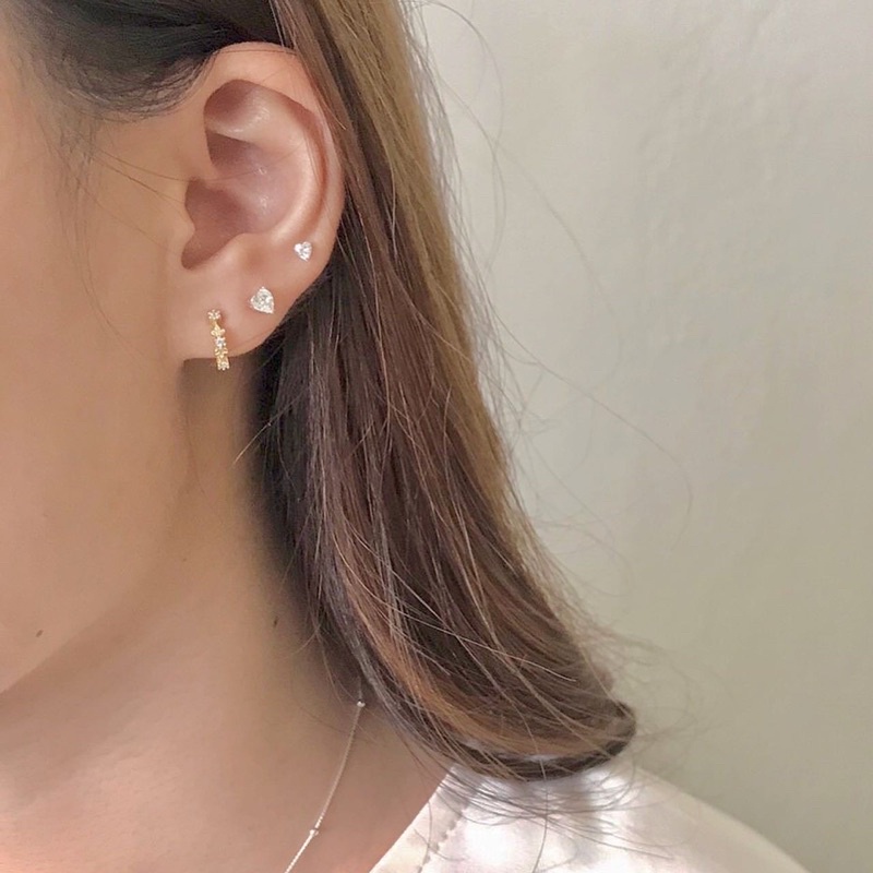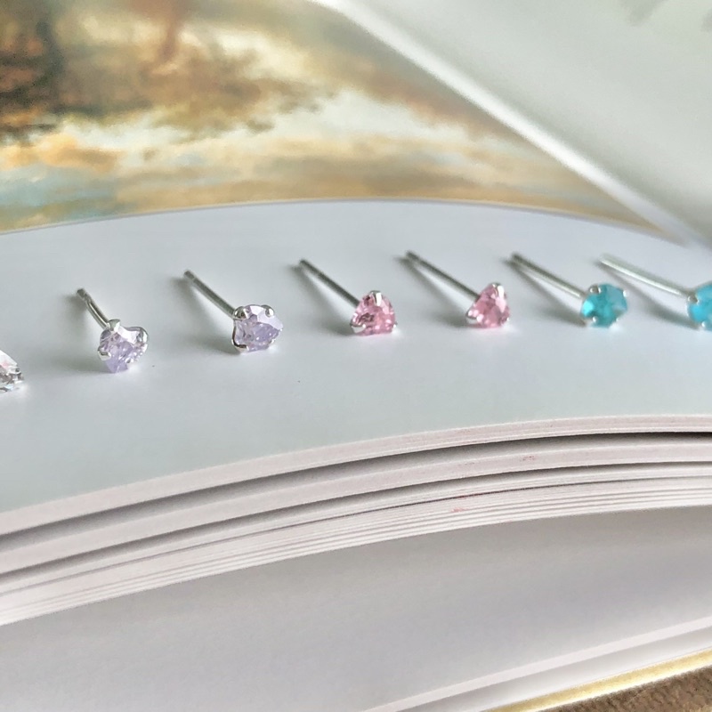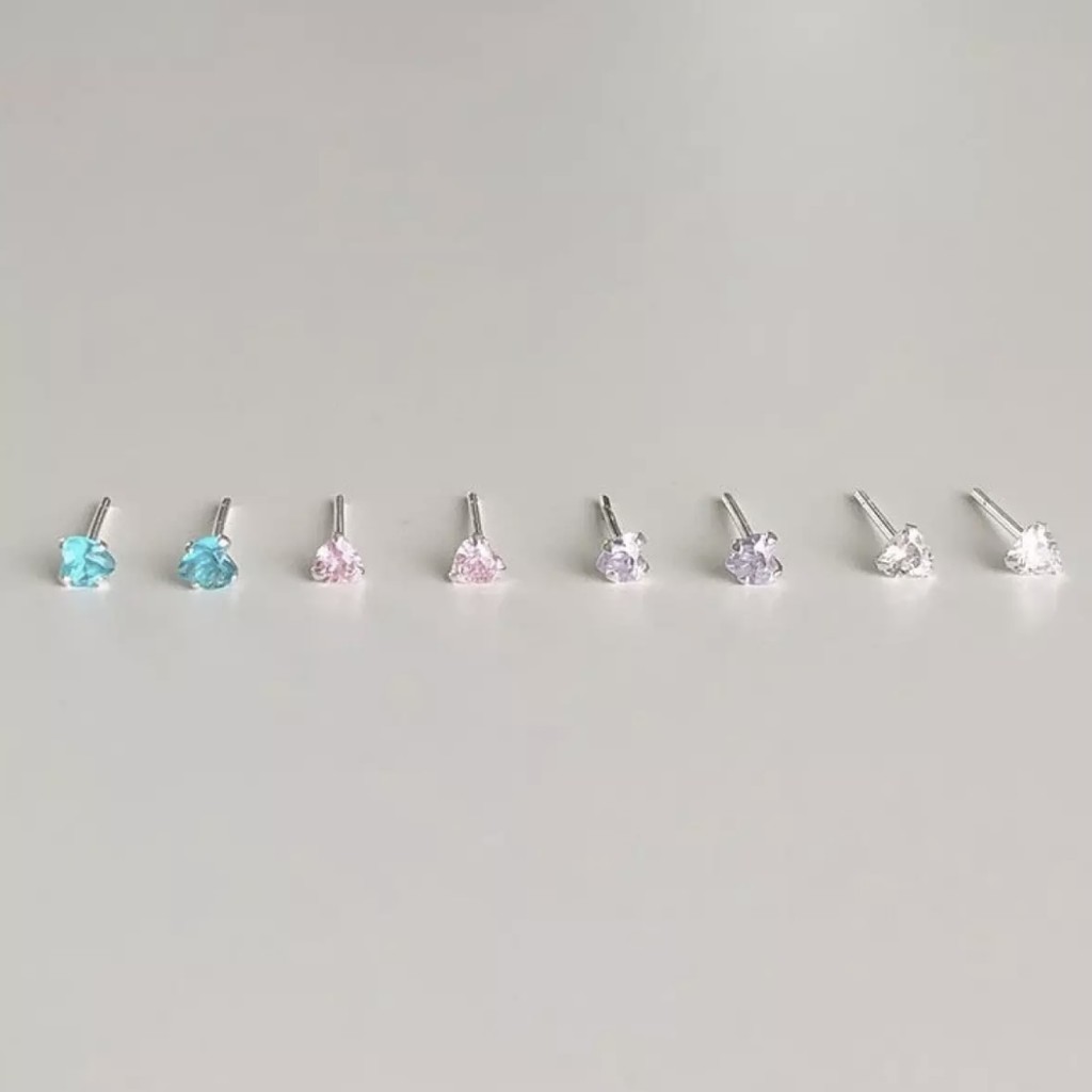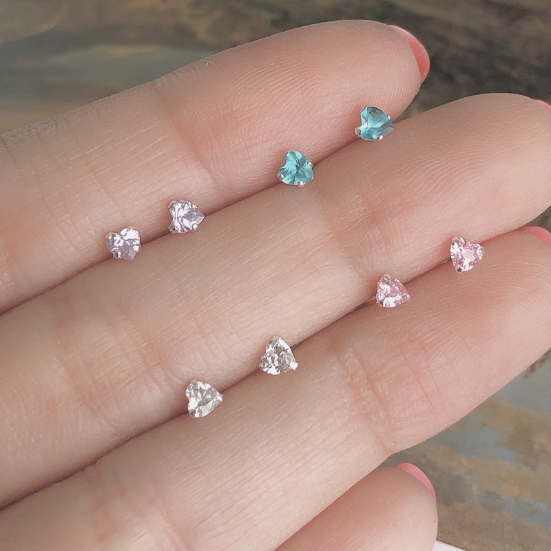 Winterwinter Jewelry Silver925 : เครื่องประดับเงินแท้925 ต่างหูเงินจิ๋ว เพชร cz รูปหัวใจ ( 3mm )w