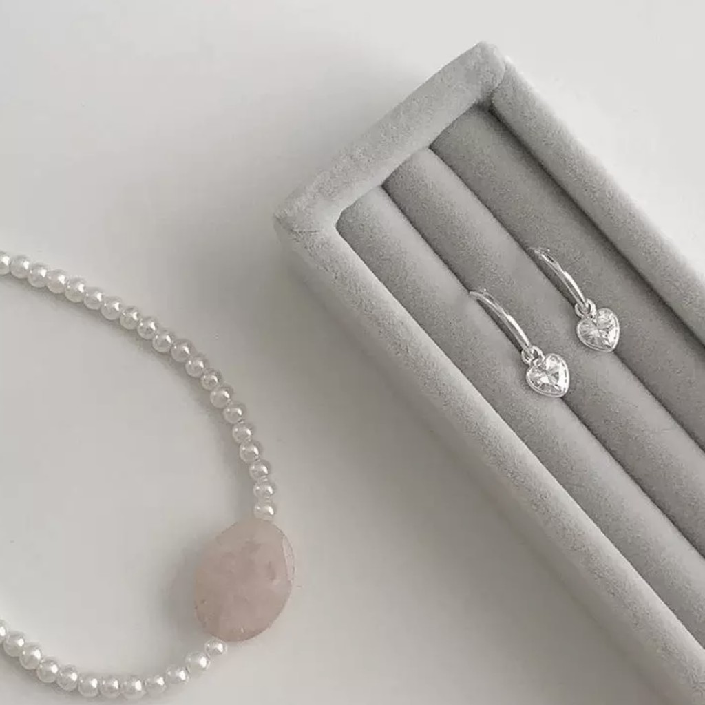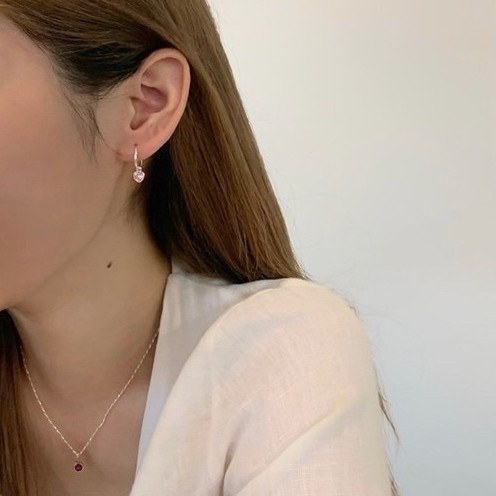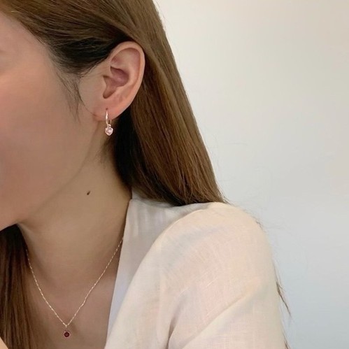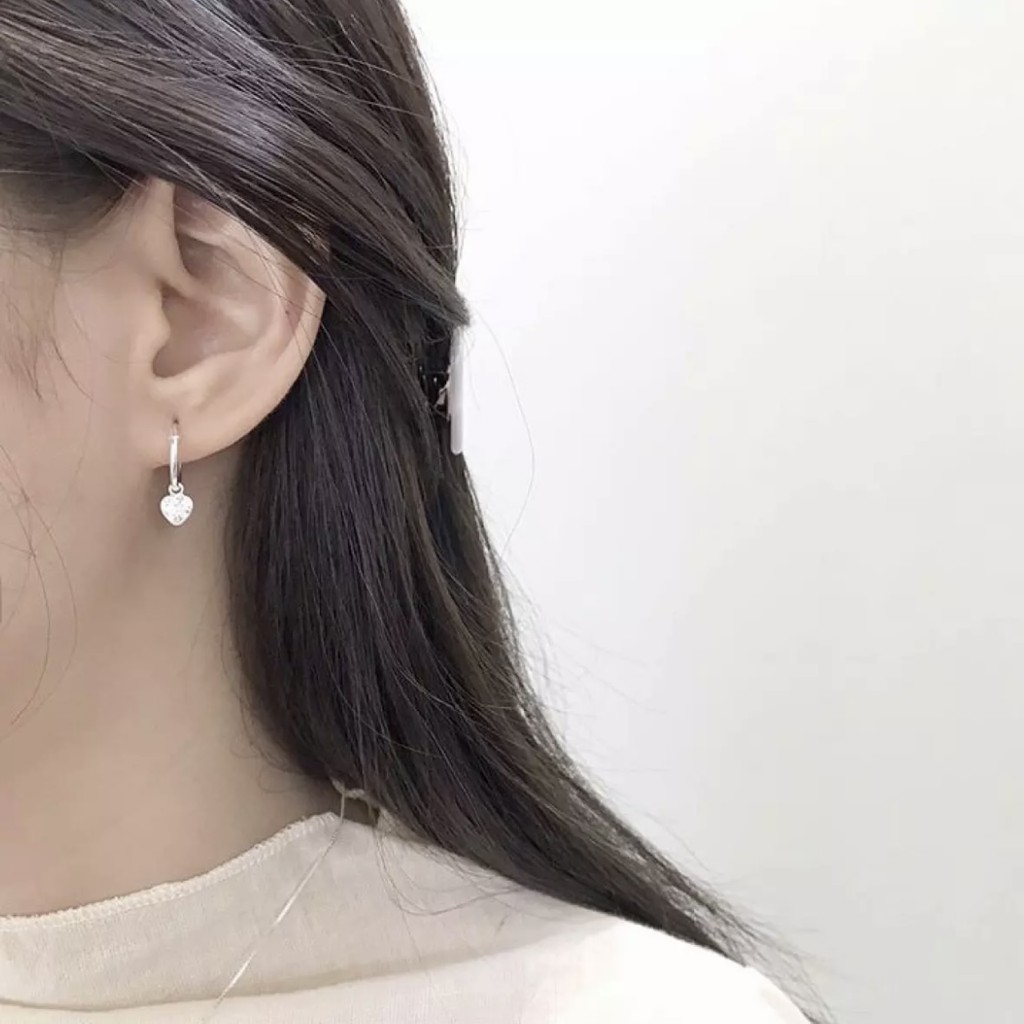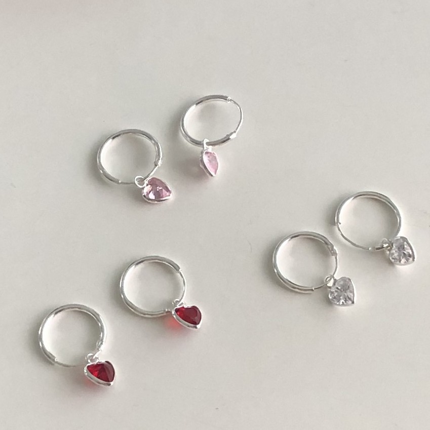 Winterwinter Jewelry Silver925 : เครื่องประดับเงินแท้925 ต่างหูห่วงเพชร cz ทรงหัวใจ ( 3.5 mm )