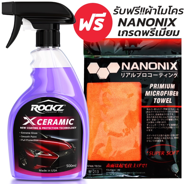 ROCKZ X CERAMIC ฟรี!! ผ้าไมโครไฟเบอร์ NANONIX Super Soft สีส้ม**สเปรย์เคลือบแก้ว ขวดใหญ่ 500ml น้ำยาเคลือบเงาสีรถ