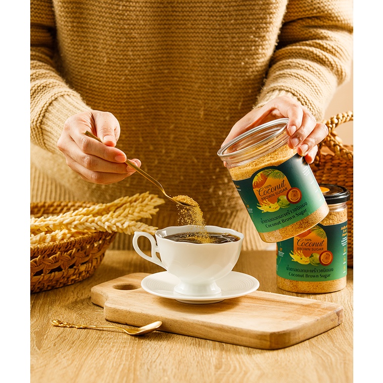 Praowan น้ำตาลดอกมะพร้าวชนิดผง 100% หอมอร่อย ดัชนีน้ำตาลต่ำ แคลอรี่ต่ำ
