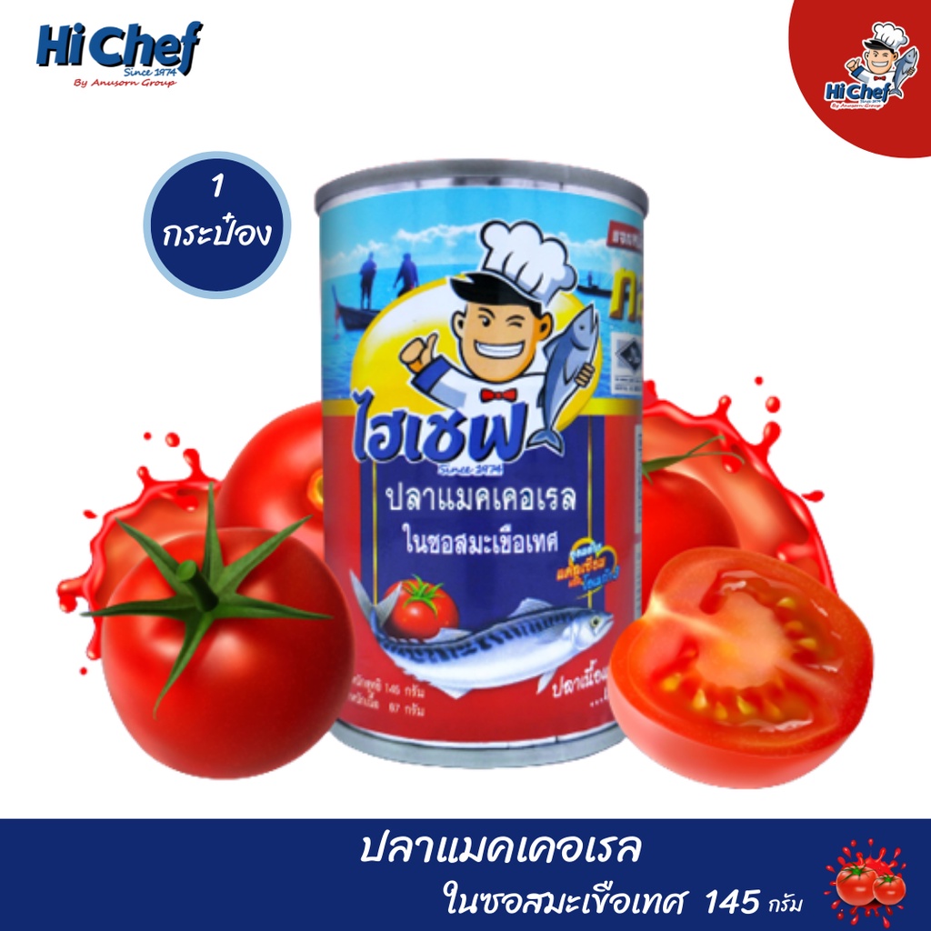 ปลากระป๋อง ตรา ไฮเชฟ / ปลาแมคเคอเรลในซอสมะเขือเทศ ขนาด 145 g. แพ็ค 1 กระป๋อง