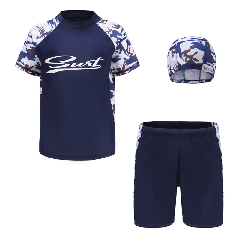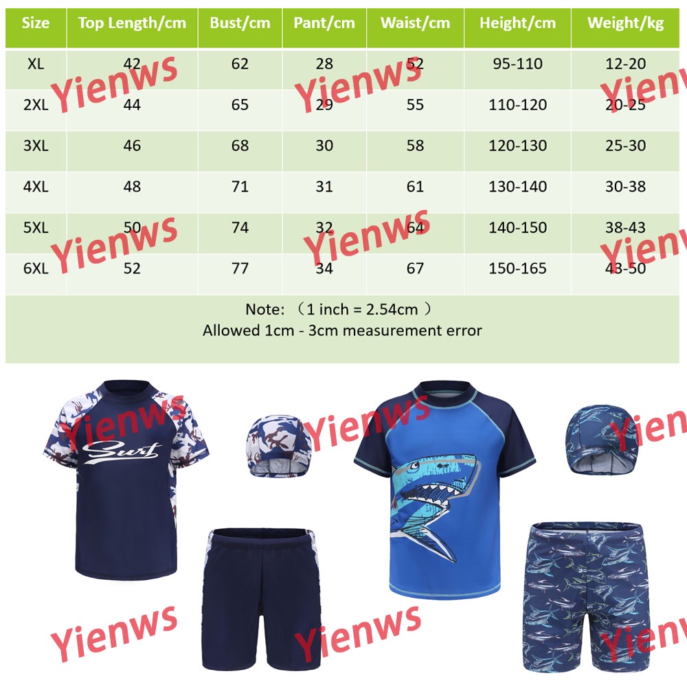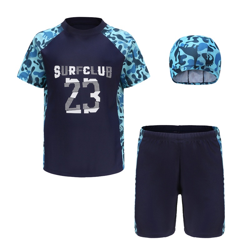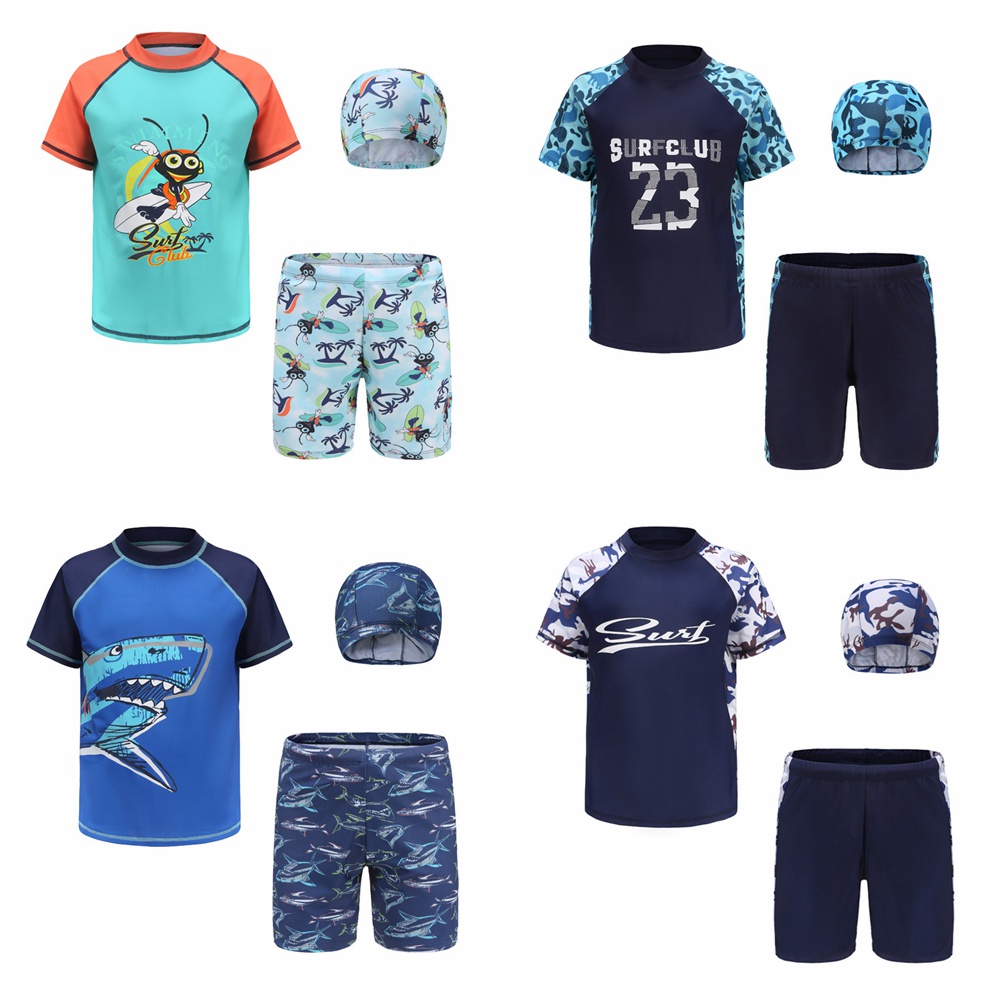 ชุดว่ายน้ําเด็กผู้ชาย แขนสั้น 95-165 ซม. XL-6XL พร้อมหมวก 3 ชิ้น