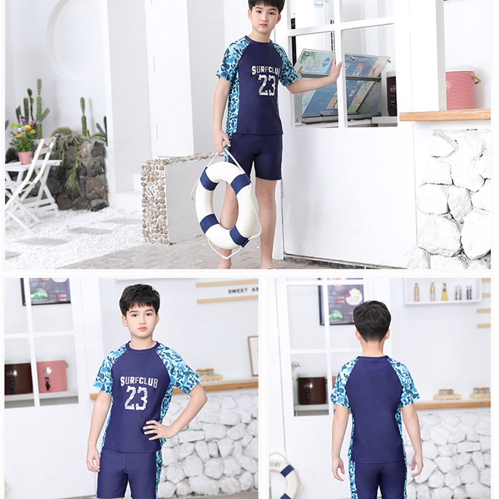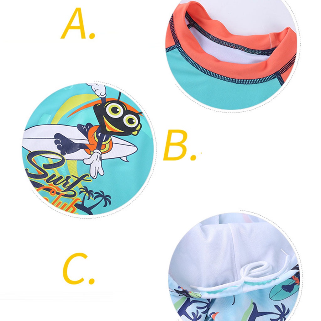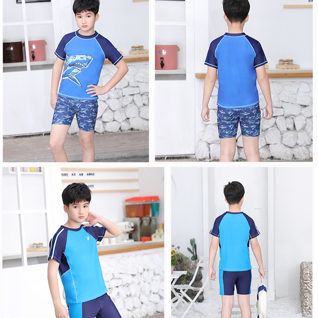 ชุดว่ายน้ําเด็กผู้ชาย แขนสั้น 95-165 ซม. XL-6XL พร้อมหมวก 3 ชิ้น