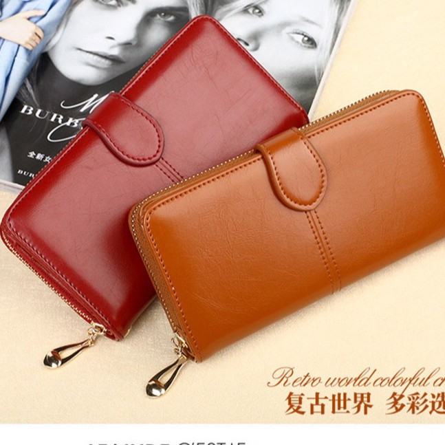 ใส่โค้ดลด SPC115BAG ลด 15.-ขั้นต่ำ 150.- กระเป๋าสตางค์ผู้หญิง🔥🔥🔥กระเป๋าสตางค์ใบยาวน้ำมันขี้ผึ้งหนังย้อนยุค TPQ13
