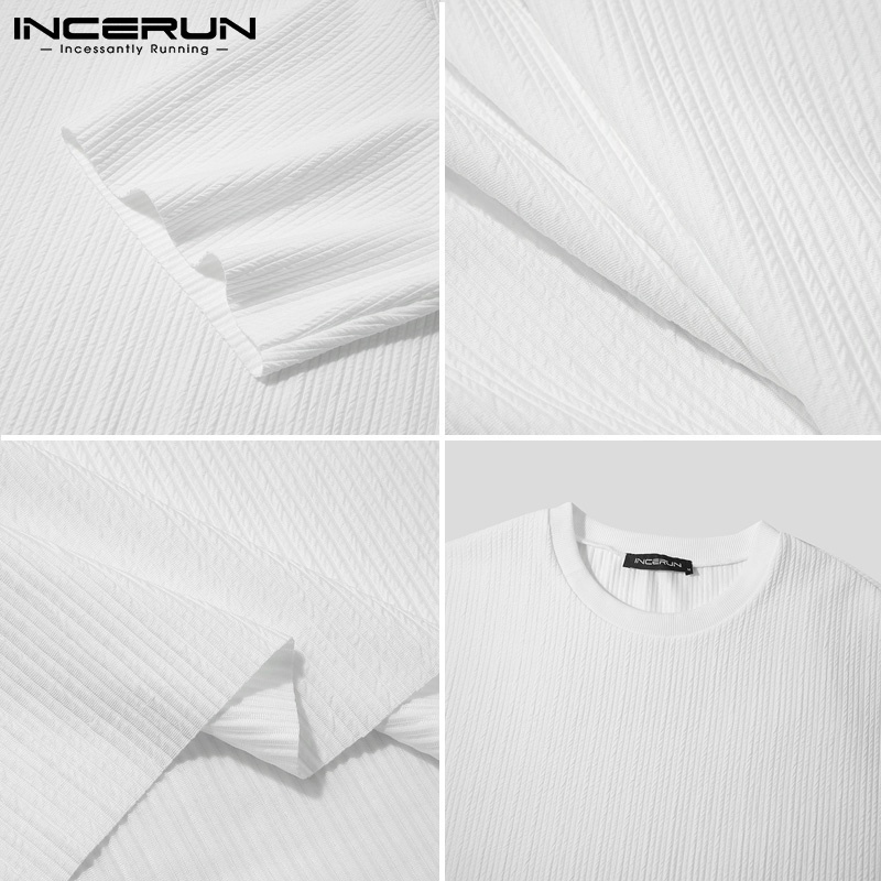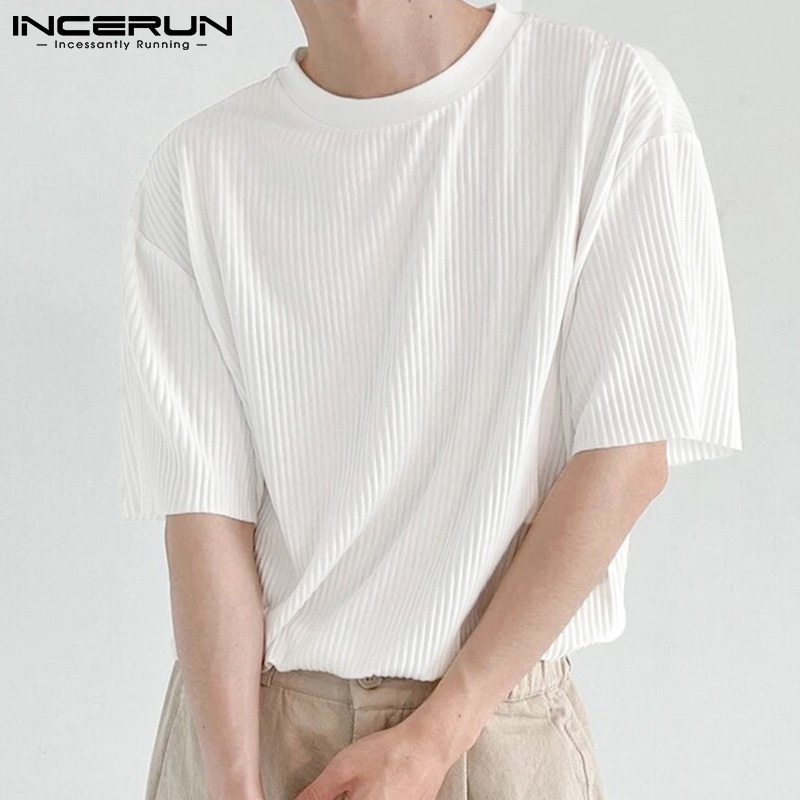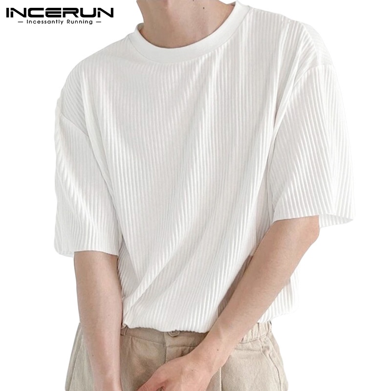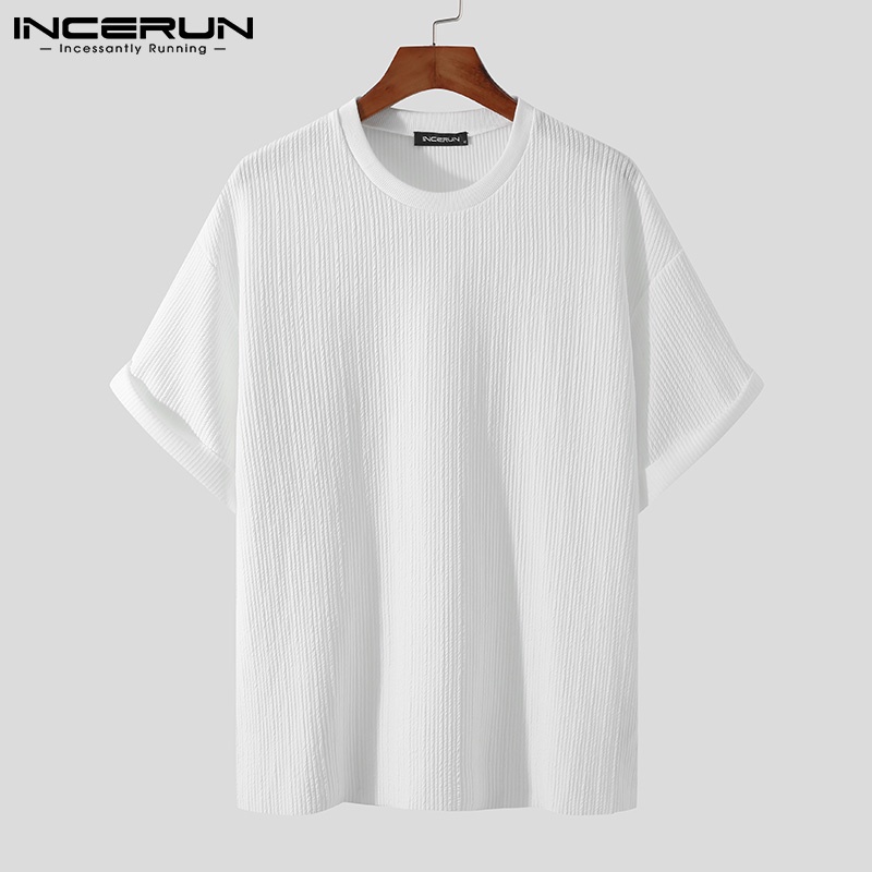Incerun เสื้อยืด คอกลม แขนสั้น ทรงหลวม สไตล์เรียบง่าย สําหรับผู้ชาย