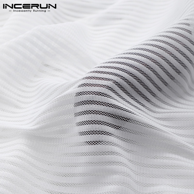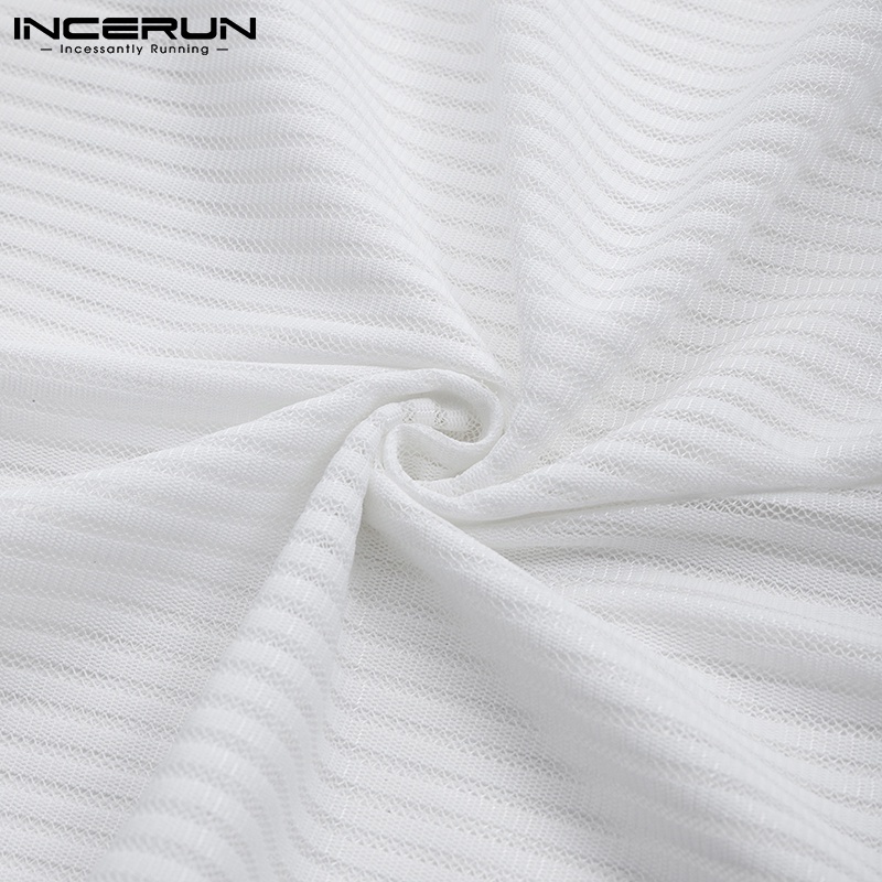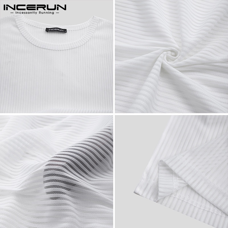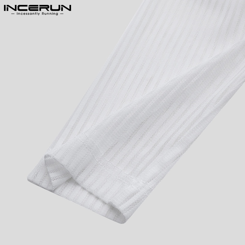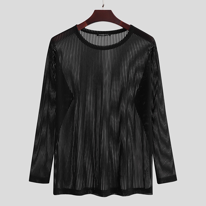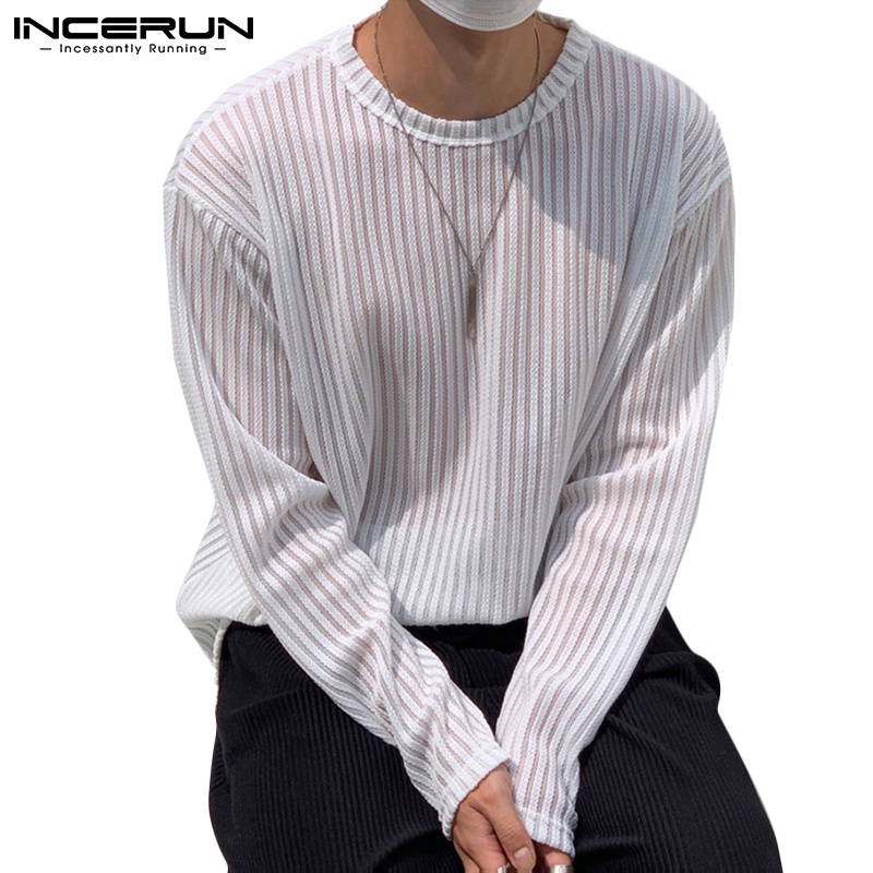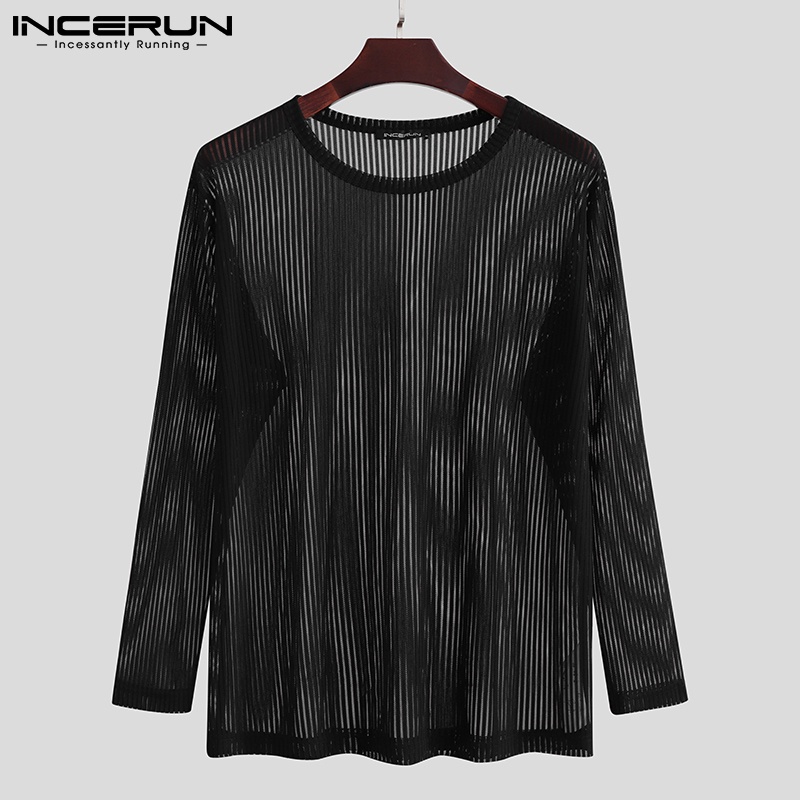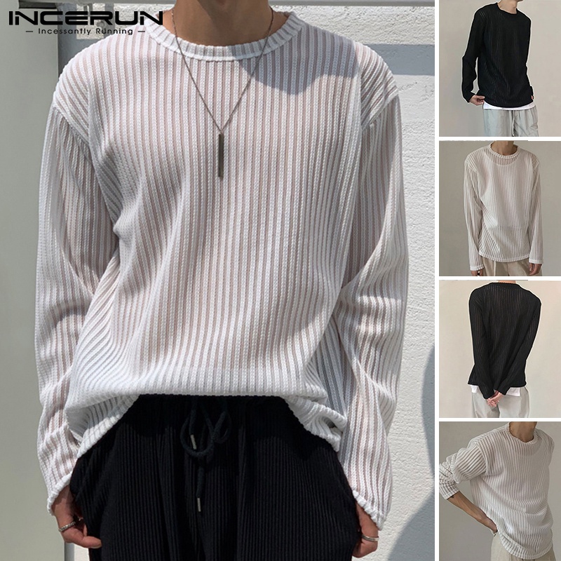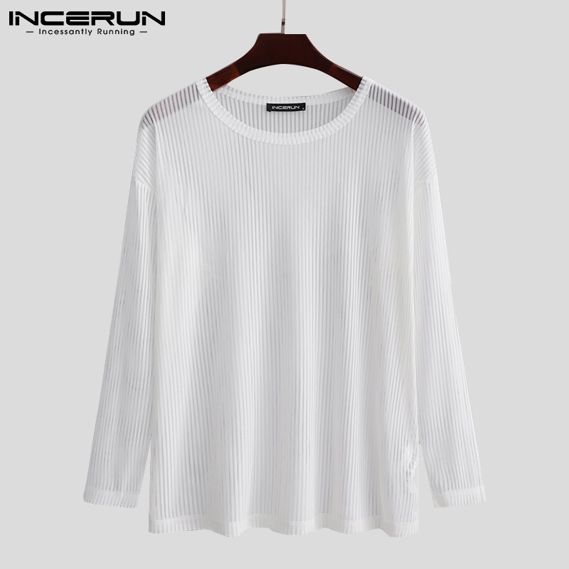 Incerun เสื้อท็อปคอกลม แขนยาว ลายทางสีขาว / ดํา สําหรับผู้ชาย