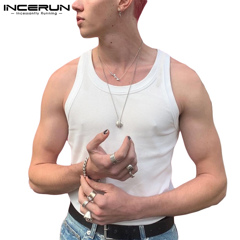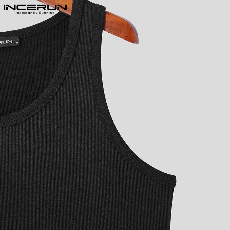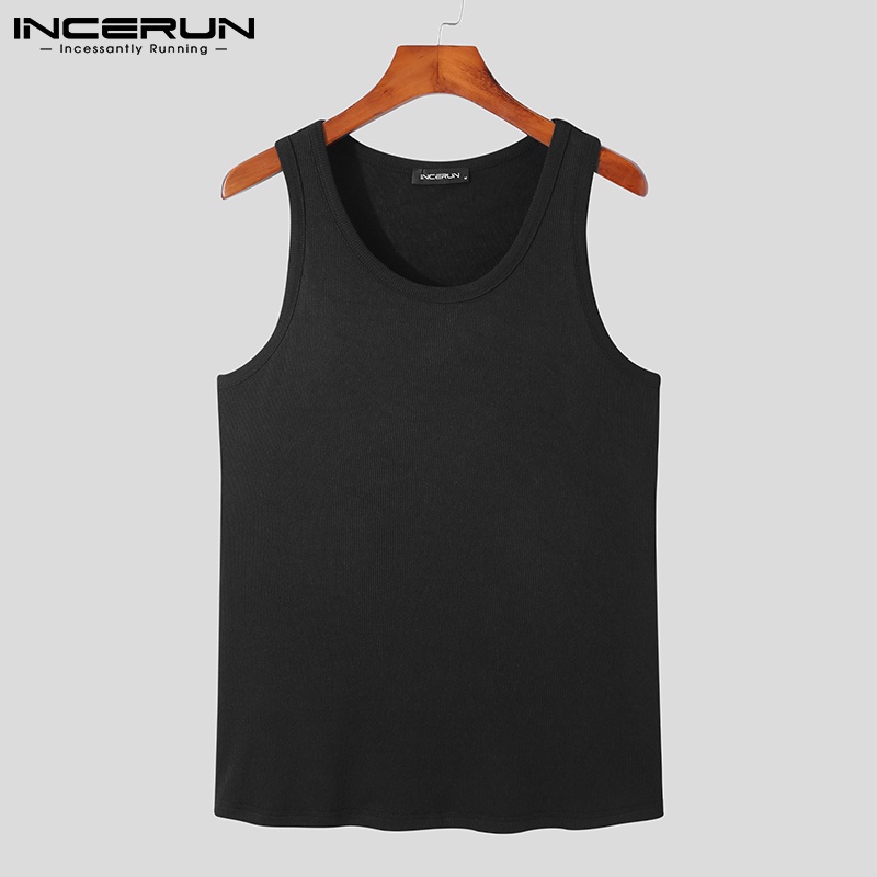 Incerun เสื้อกล้ามลําลอง คอกลม สีพื้น สําหรับผู้ชาย