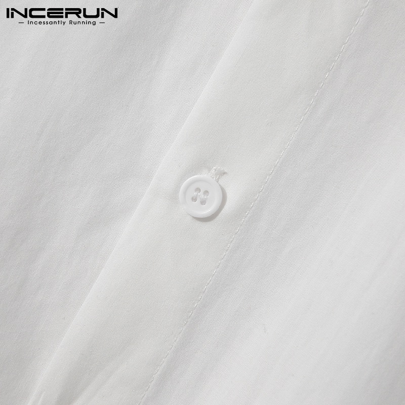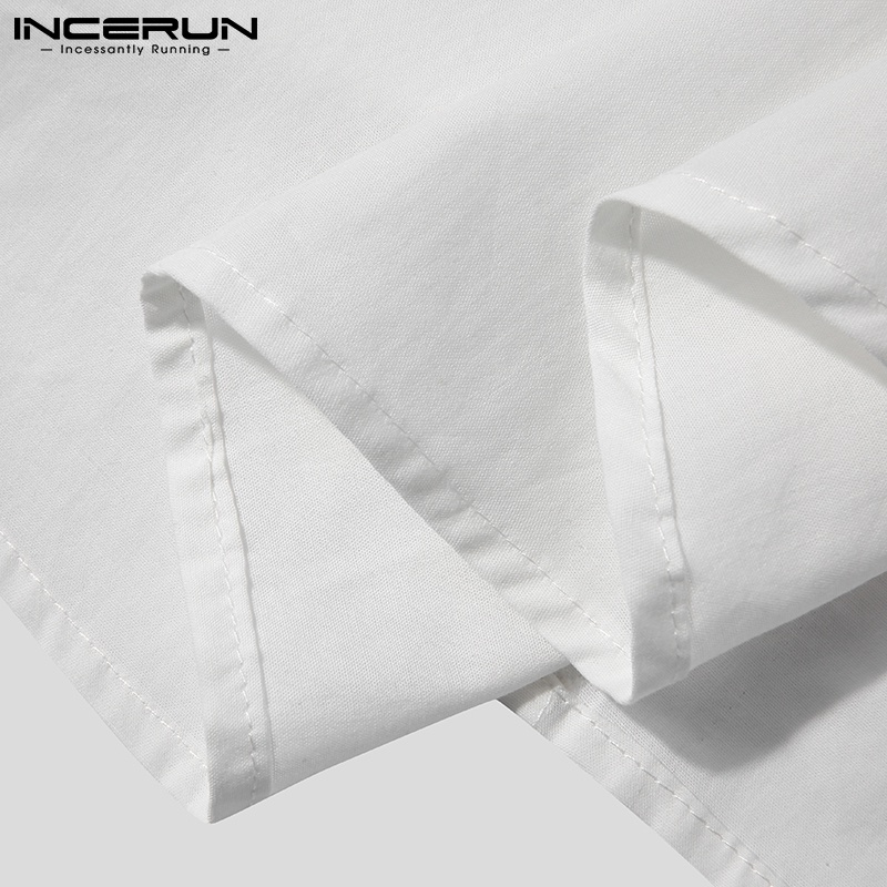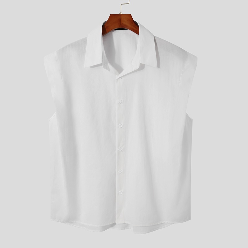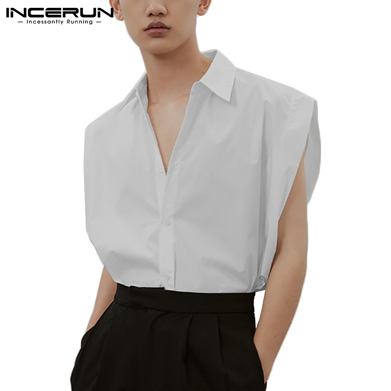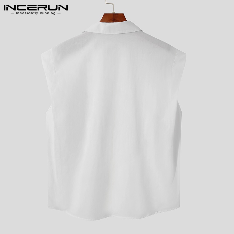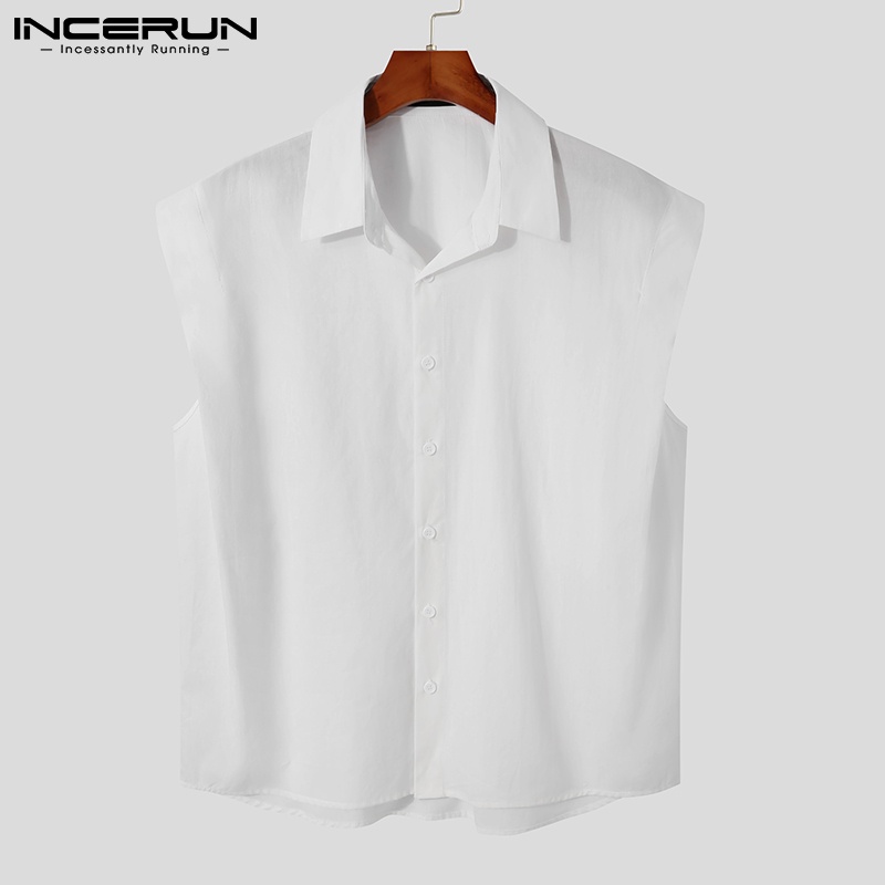 Incerun เสื้อเชิ้ต คอปก แขนกุด ผ้าฝ้าย ทรงหลวม ติดกระดุม แฟชั่น สําหรับผู้ชาย